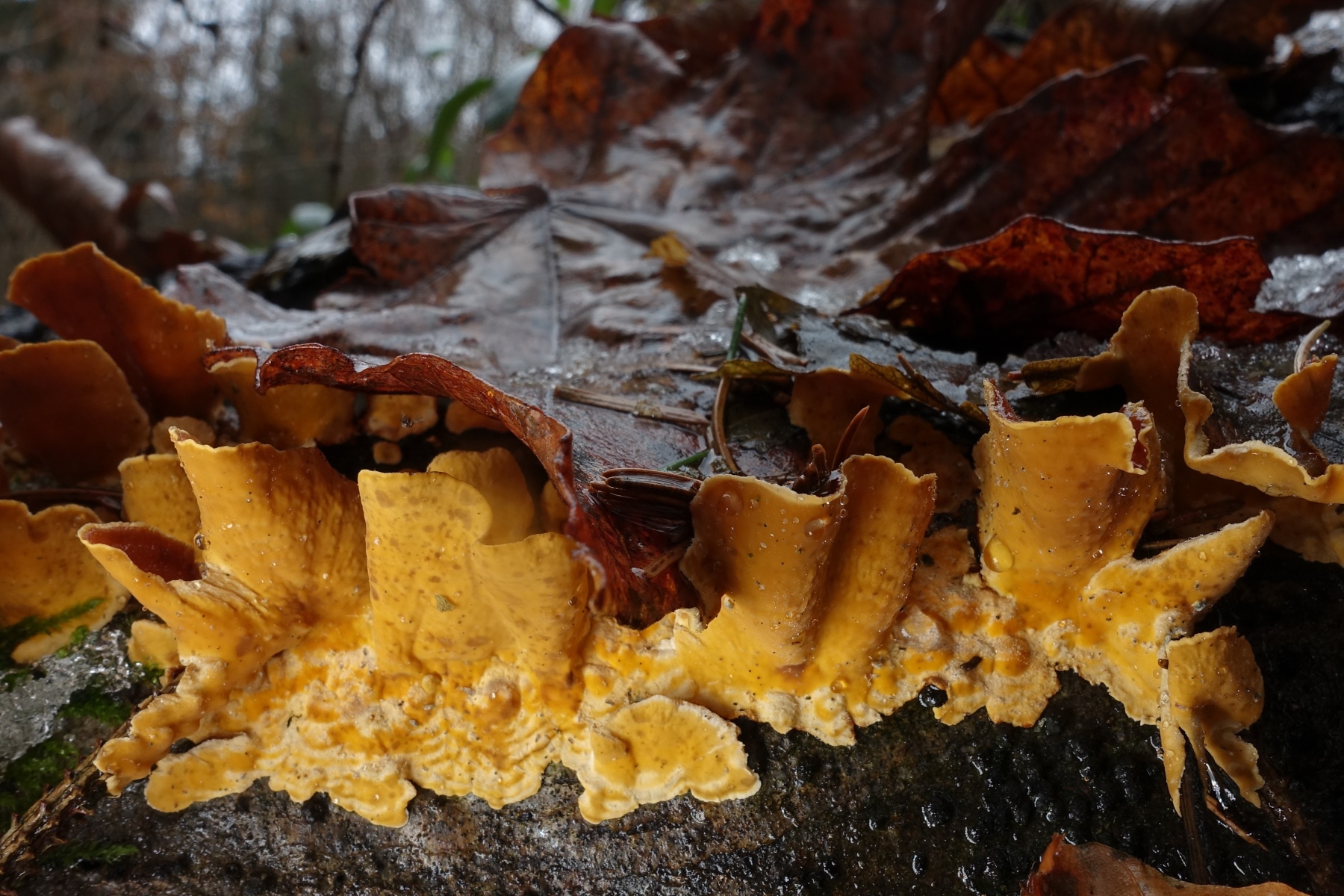 9. Platz - Bild 4 (Paulis) mit Striegeliger Schichtpilz (Stereum cf. hirsutum)