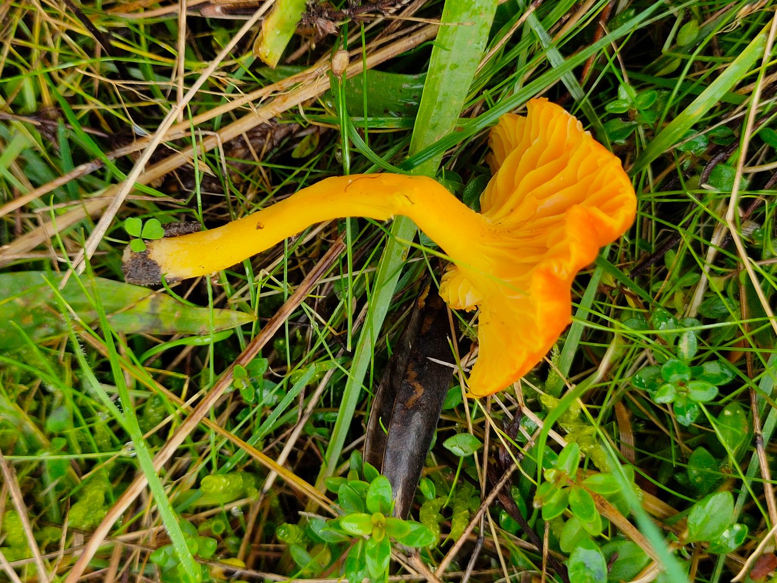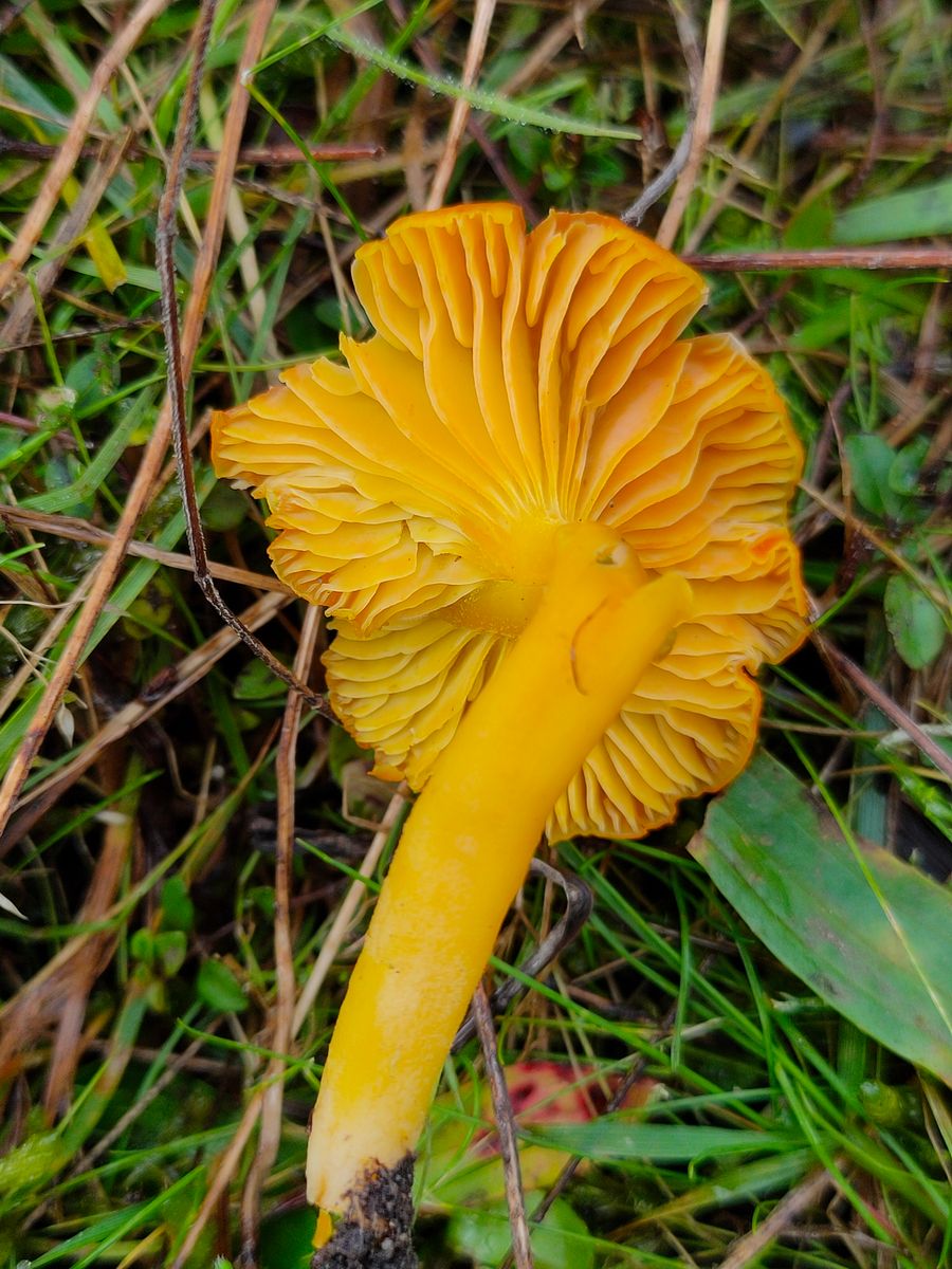4. Magerwiesenfund: Ein ganz gelb/orange trockener nicht klebriger Saftling der eine deutlich genabelten Habitus zeigt.