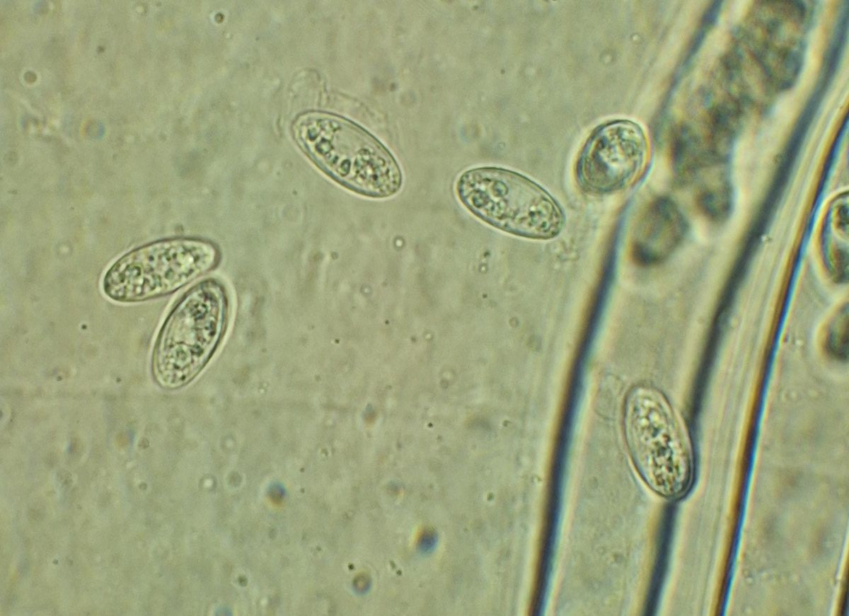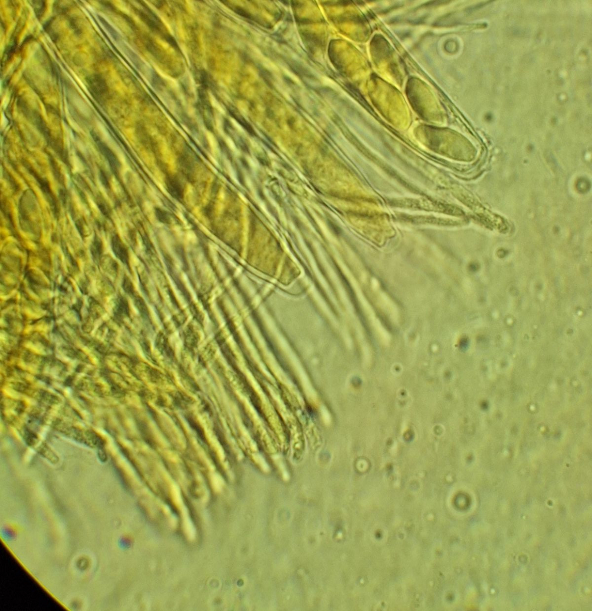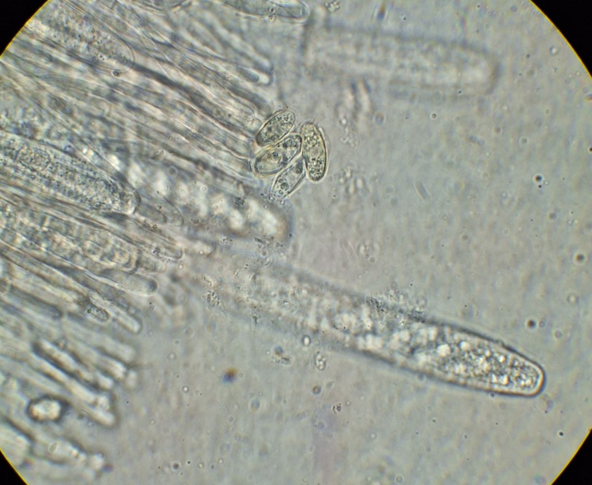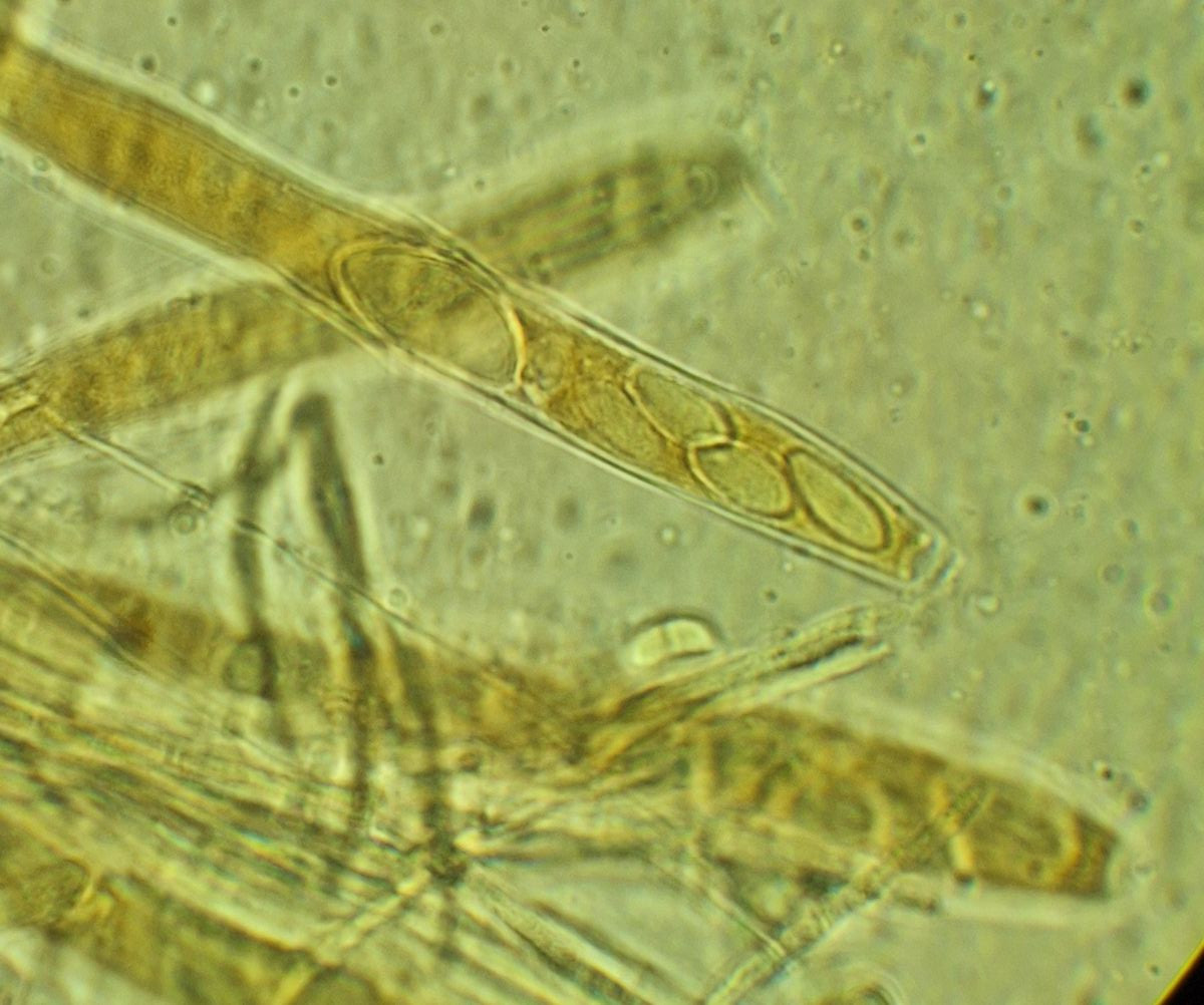 in Wasser, die Asci sind etwa 160-200 µm lang, Sporen 12-17*6-7 µm, Paraphysen ~3 µm dick, geringfügig dicker am Ende und dort mit Pigment besetzt