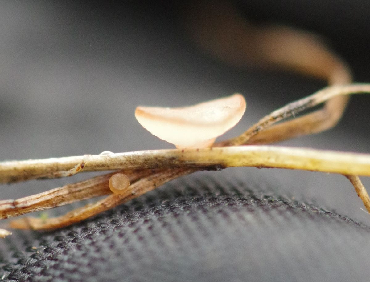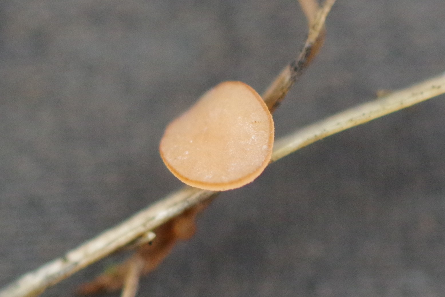 an Gras auf 'ner Magerwiese habe ich diesen kleinen (2,5 mm) Becher mitgebracht. Zum Substrat hin verjüngt, aber kein Stiel. Relativ fleischig. Der Rand ist etwas dunkler.