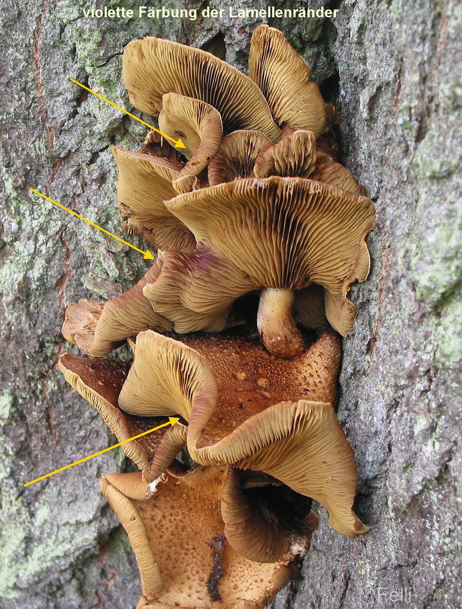 An einem Hainbuchenstamm in ca 2m Höhe fand ich ein Büschel Schüpplinge. Auf Grund nasskalter Witterung hab ich nur ein Bild gefertigt -leider. So im Nachhinein hab ich leichte Zweifel an der Bestimmung besonders weil ich auf den Lamellenrändern eine violettebräunliche Färbung wahrgenommen habe.( Vielleicht nur eine Alterserscheinung)