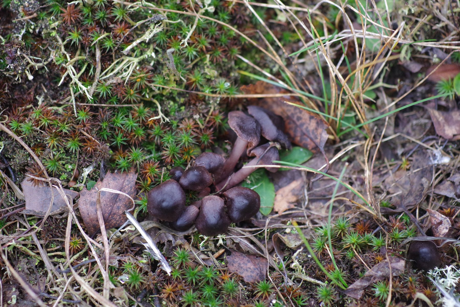 gestern habe ich mir ein dunkelbraunen Lamellenpilz mitgebracht, der nach mal wieder getautem Schnee erstaunlich frisch aussah. Magerer Standort auf Sand, vermutlich etwas kalkhaltig. Als Mykorrhizapartner kommt nur Kiefer in Frage. Wächst in Clustern. Bis 3 cm groß.