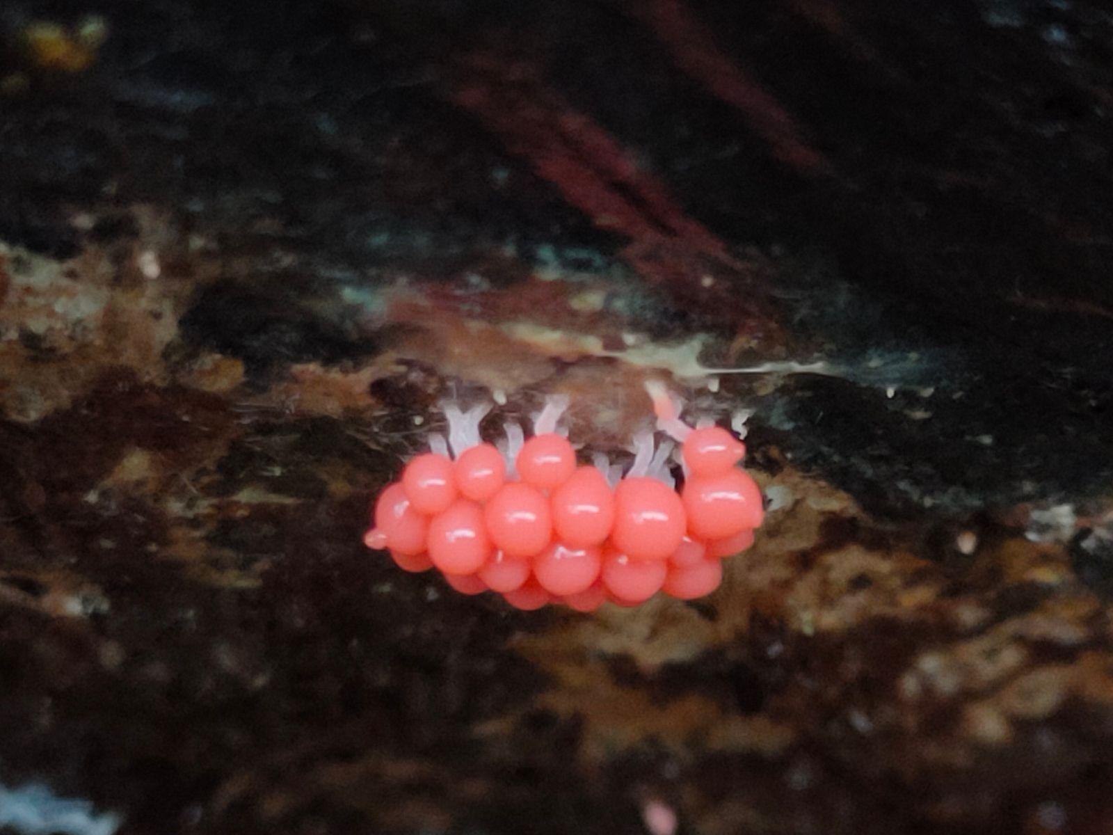 2. Des Weiteren ist mir noch dieser rote Myxo an massiven Substrat aufgefallen. Ich habe ihn als Trichia decipiens bestimmt.
