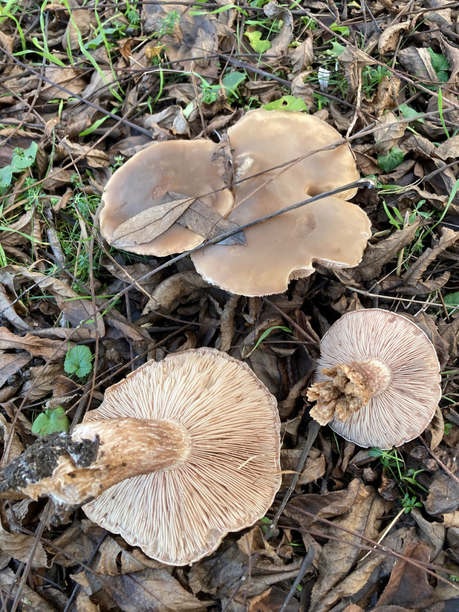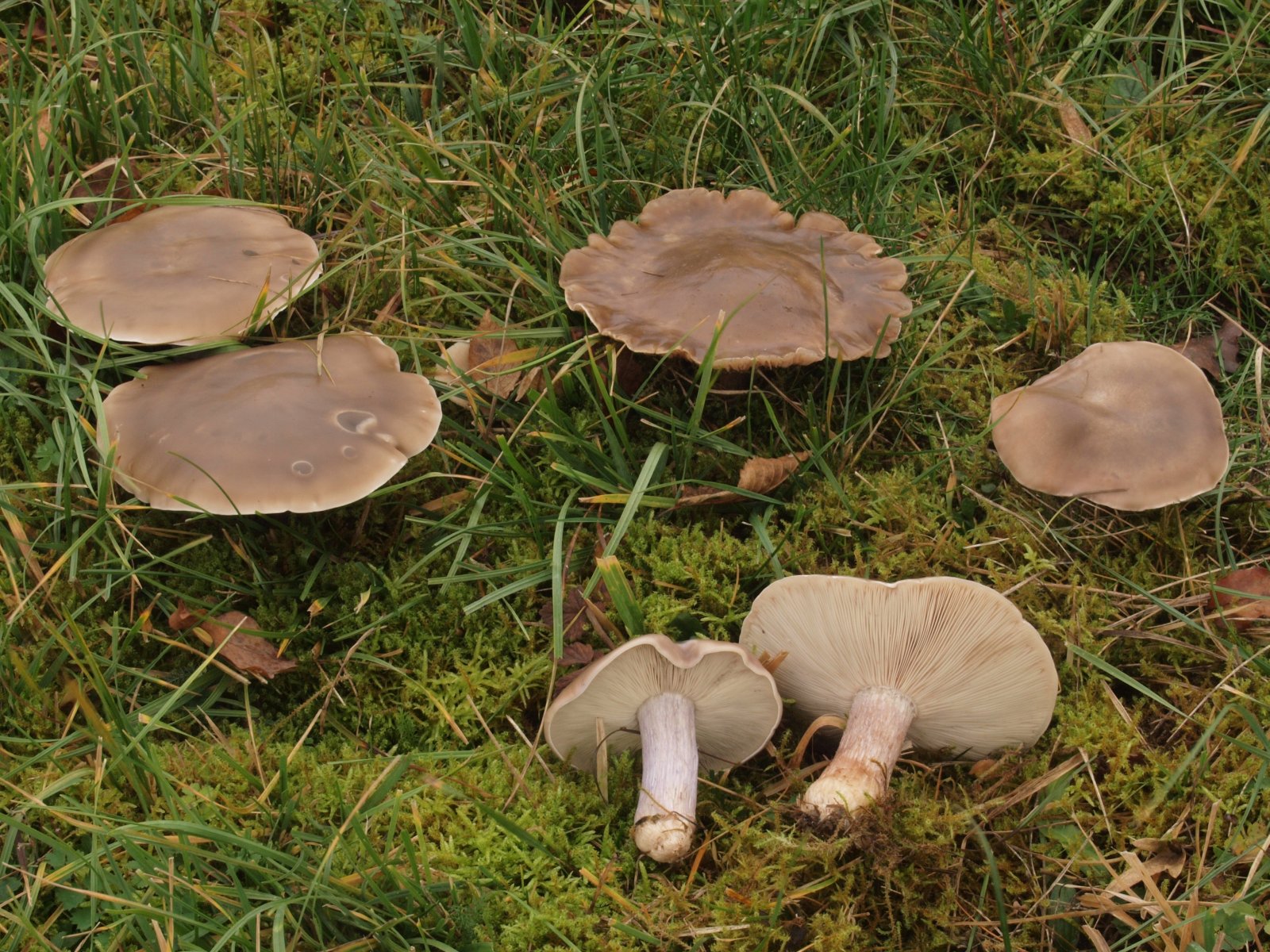 Hüte glatt, hellbraun. Ich fand sie hygrophan. Sicher 10 cm im Durchmesser.