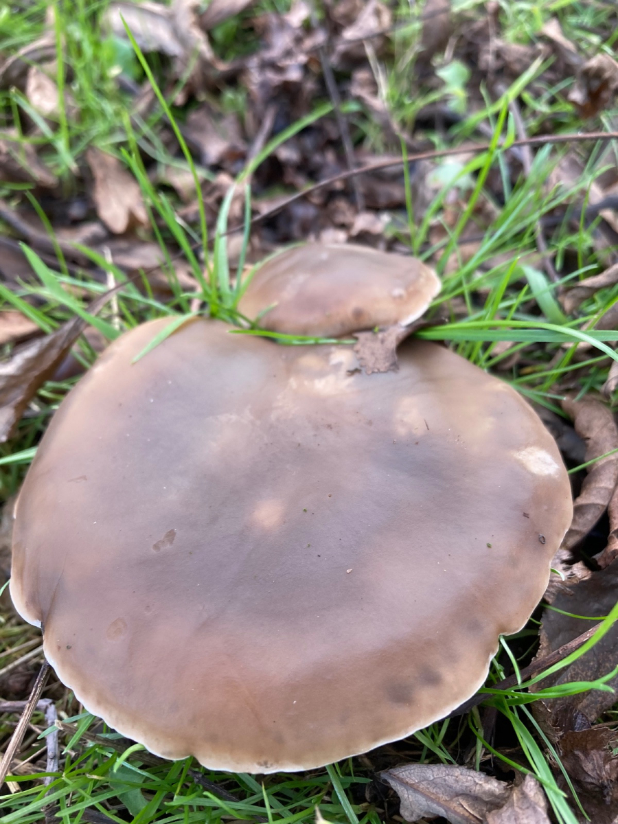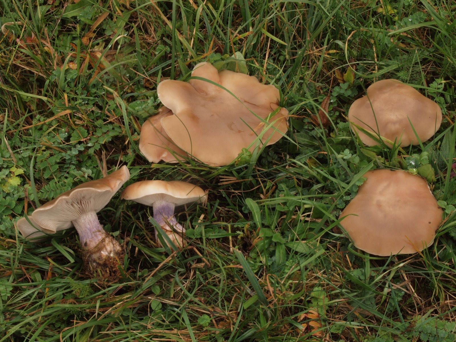 Eigentlich befand ich mich auf einer Flechtenwanderung, als ich eine Gruppe großer Pilze fand. Größe, Jahreszeit, Fehlen von Mykorriza-Partner ( ringsum nur Flügelnüsse in Parklandschaft ), einigermaßen abschiebbare Lamellen lassen mich am ehesten in der Gattung Lepista landen.