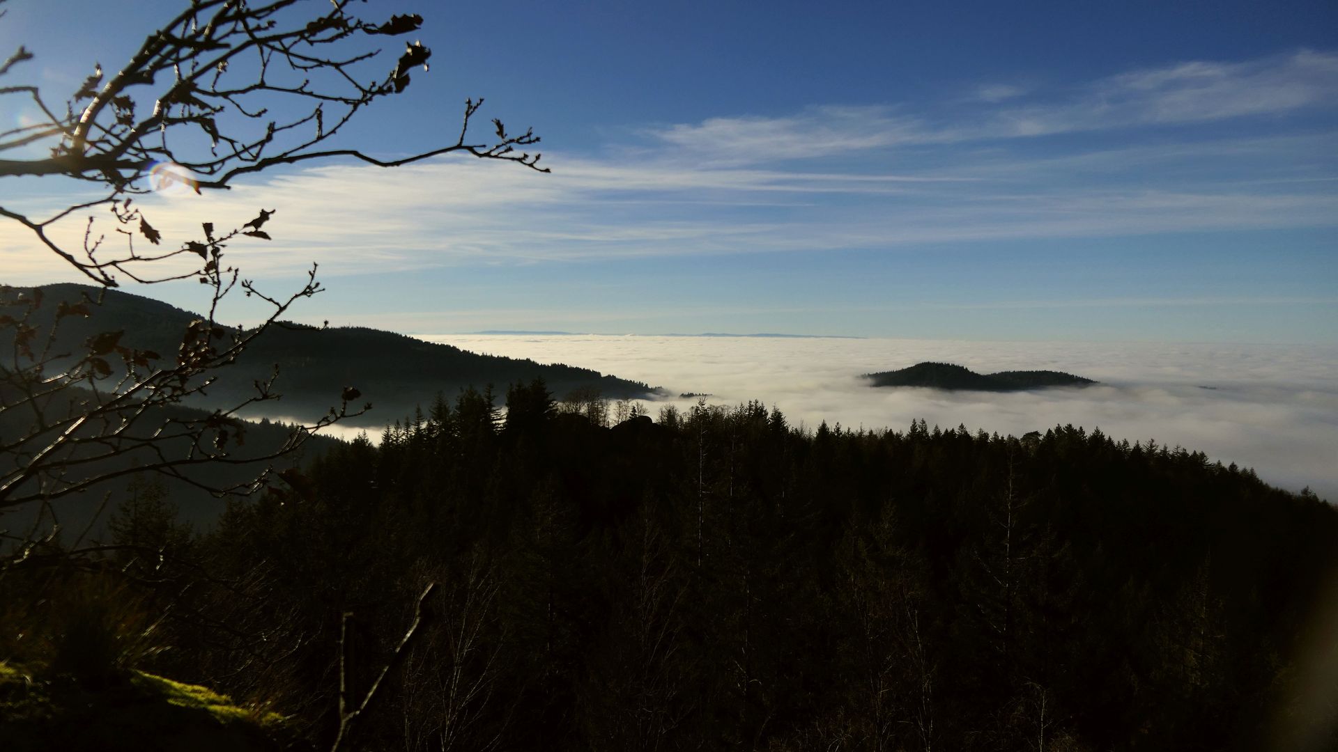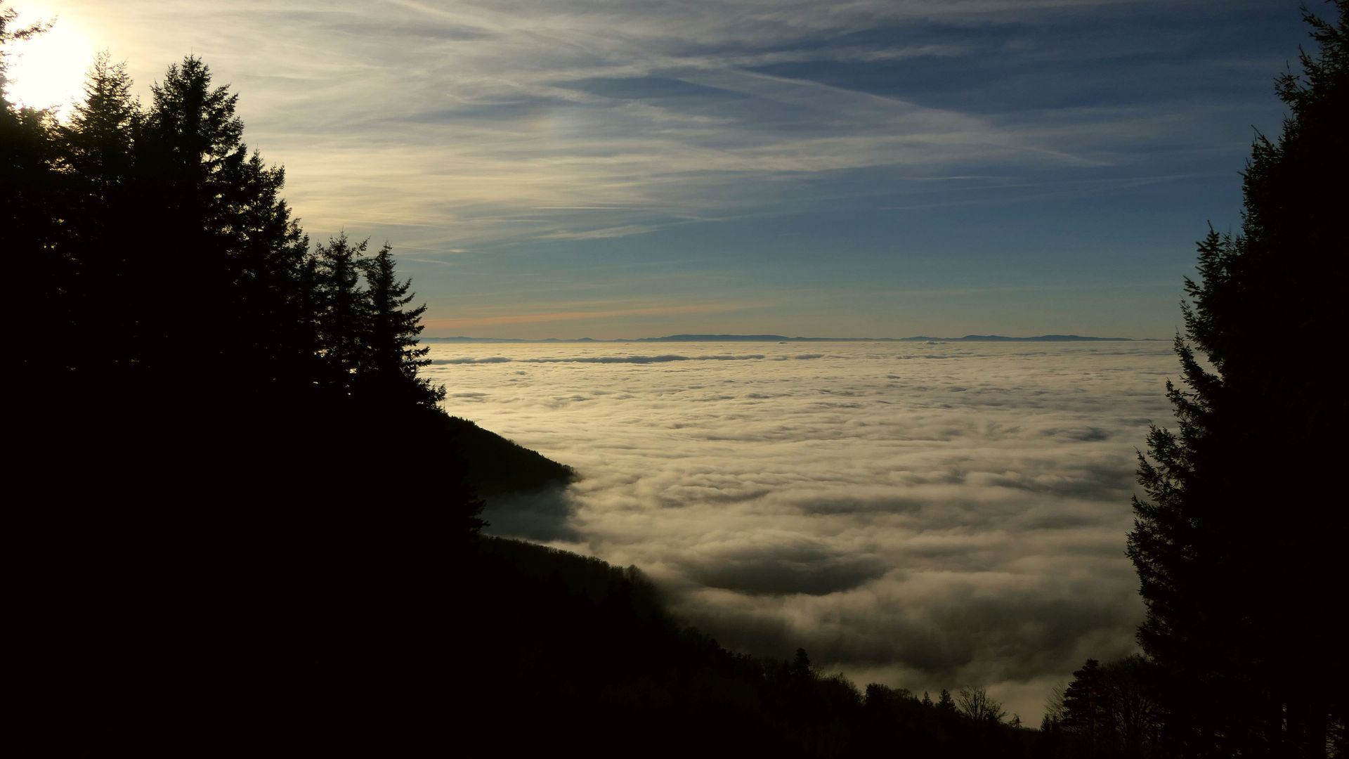 Wolken wogen kühl im Tal, an Horizon die Gestade der Vogesen.