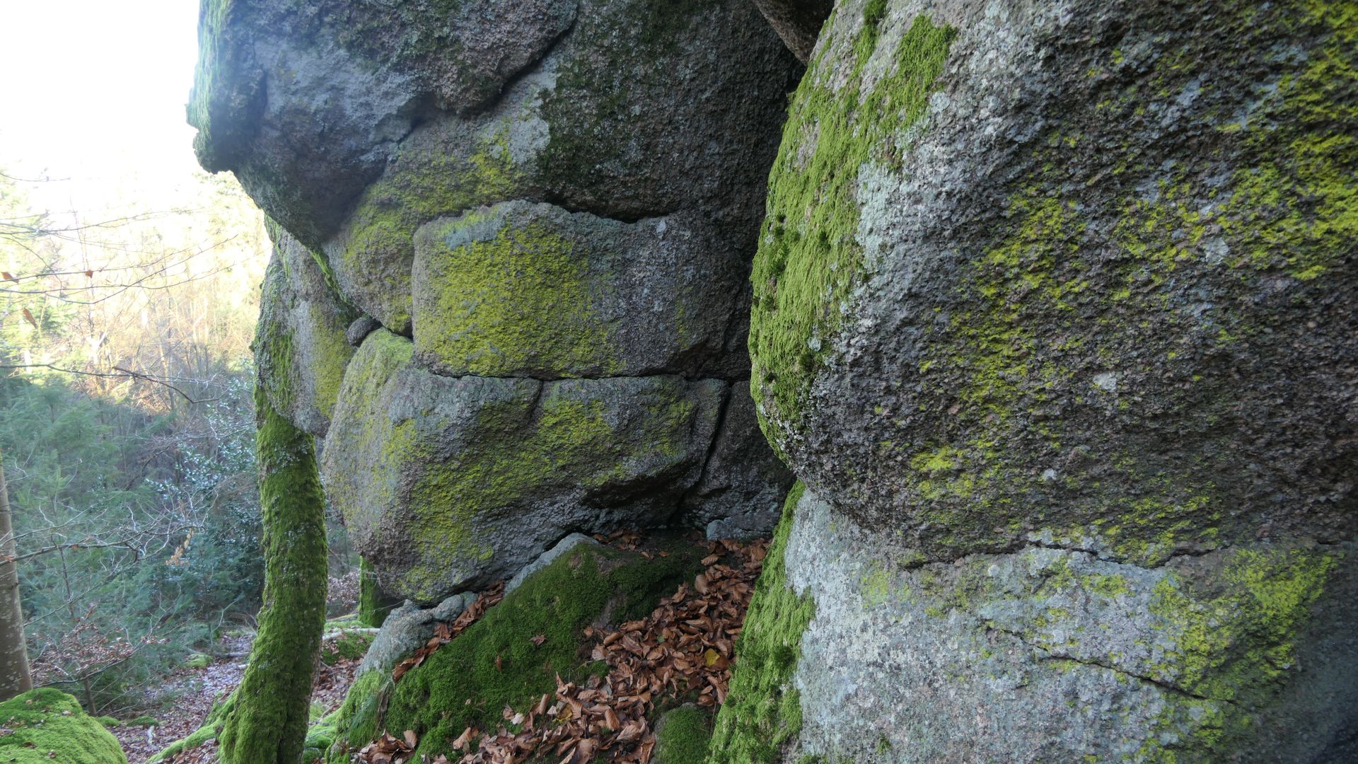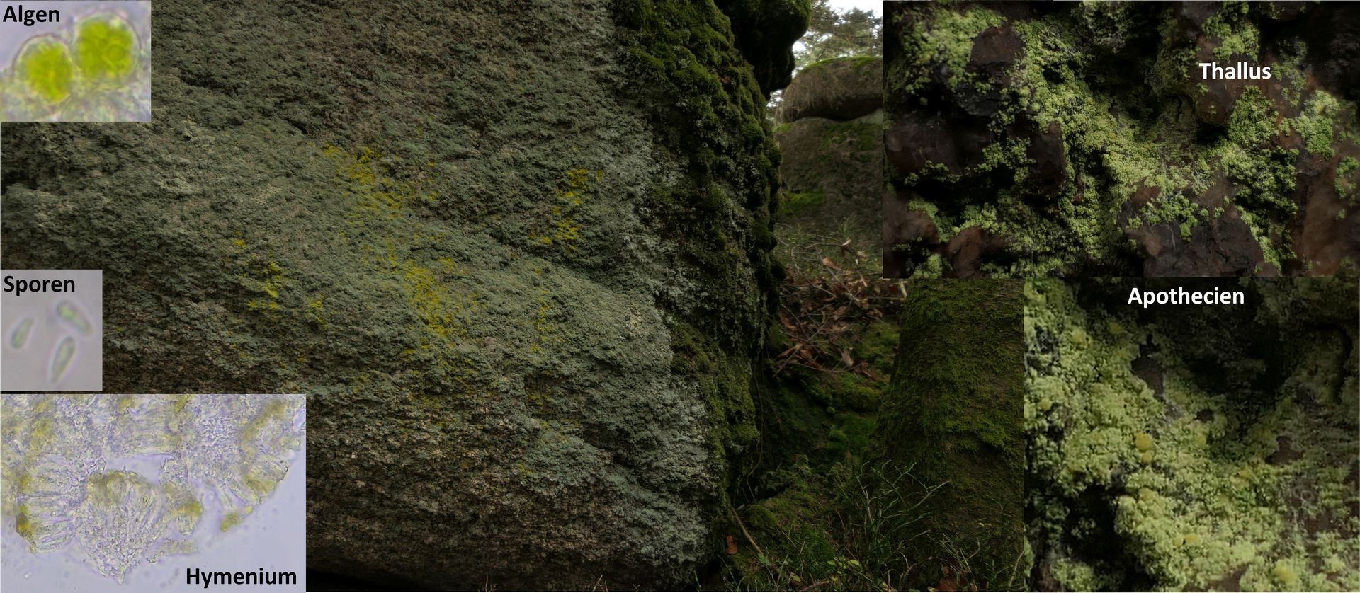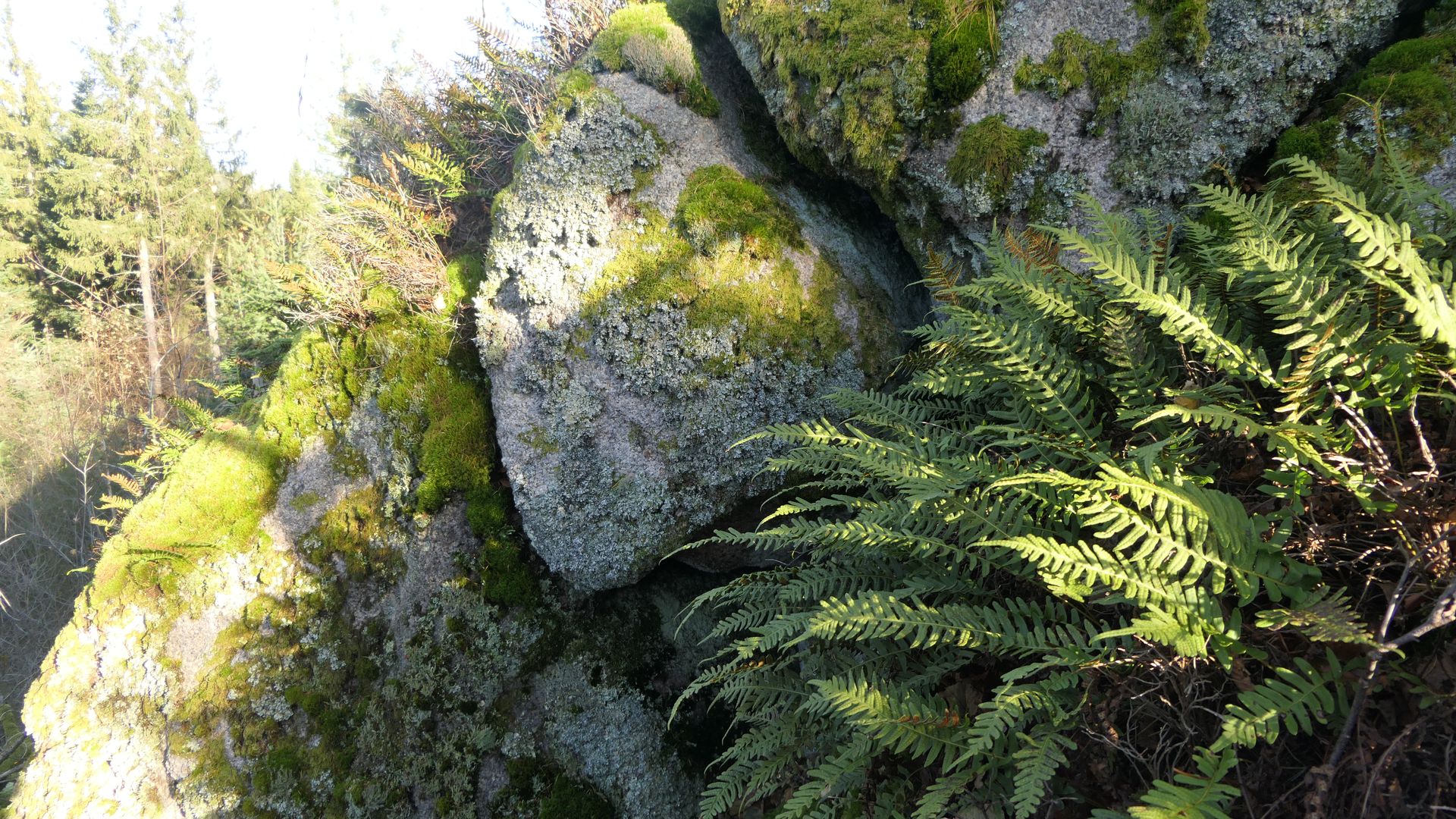 Auch Xanthoparmelien sind hier auf den Silikatfelsen vorhanden