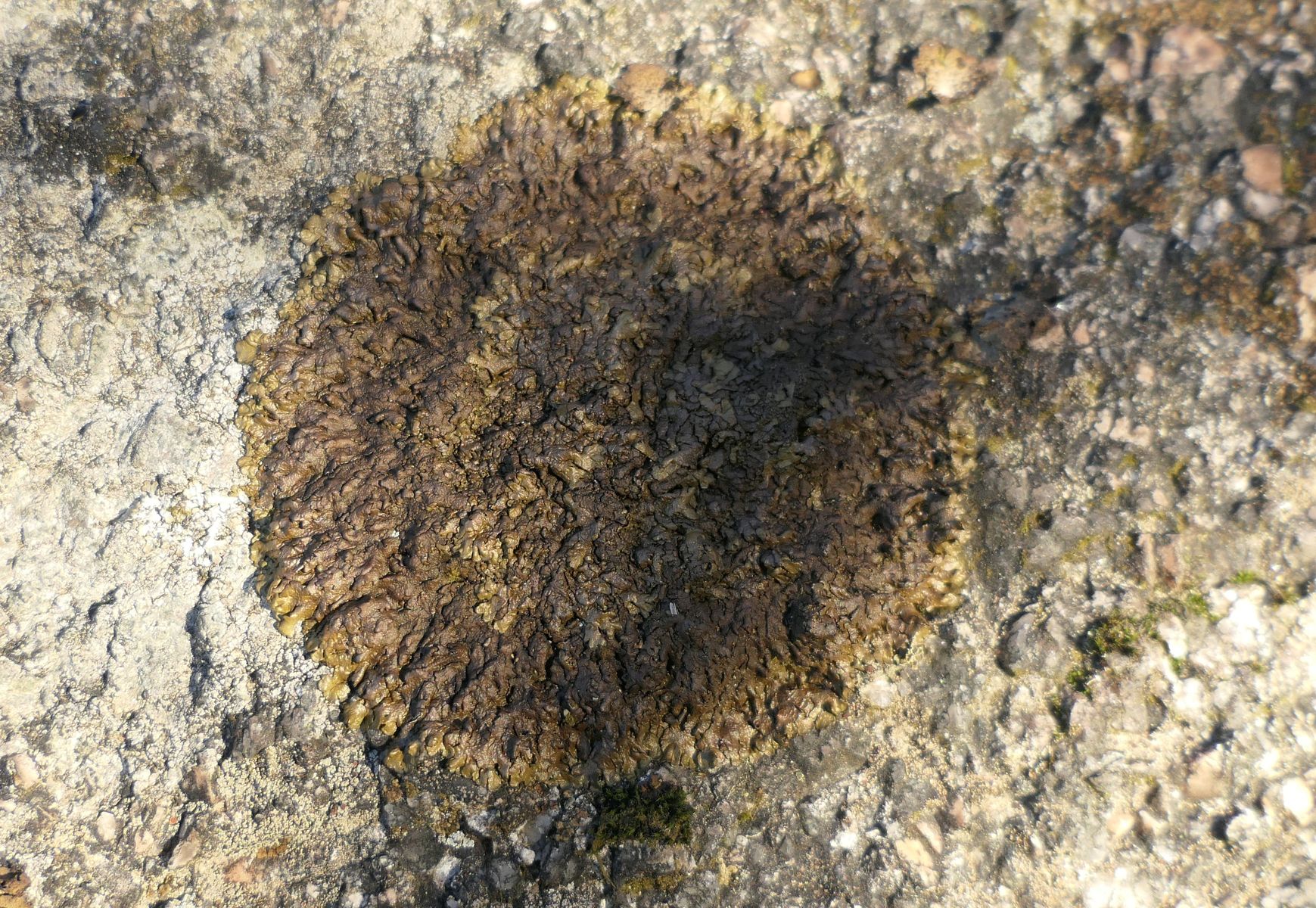 Bild 7 Abgerissene Lasallia pustulata (Blick auf Unterseite) , die Oberseite ist grün veralgt und wenig ansehnlich.