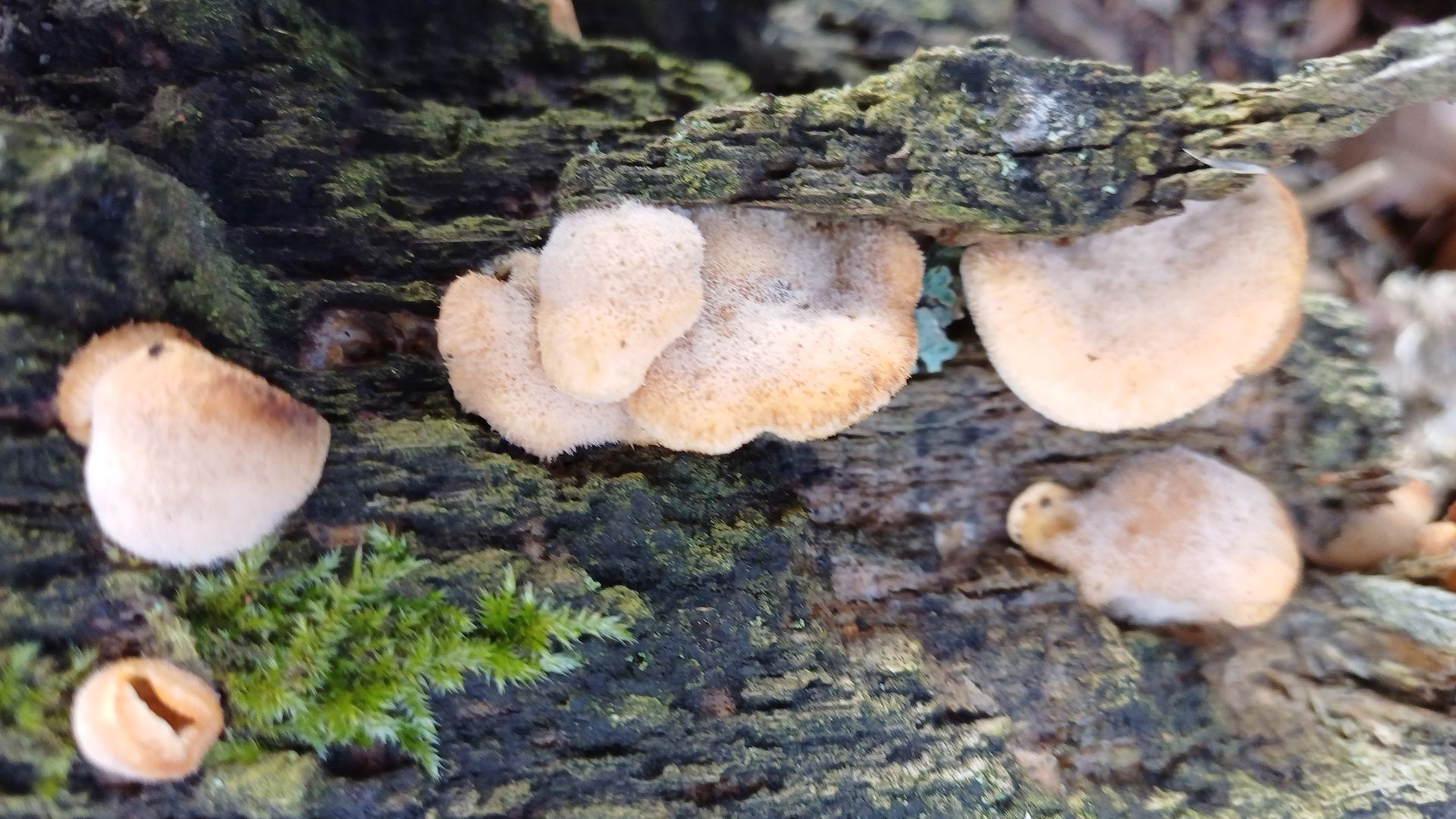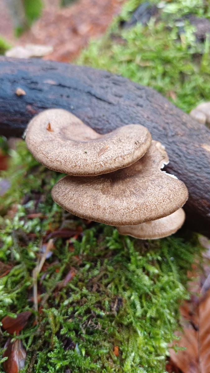Dann ging es tiefer in den Wald. Vorbei an überalterten Herbsttrompeten, etlichen Konsolenpilzen, fand sich diese Gruppe Winterporlinge.