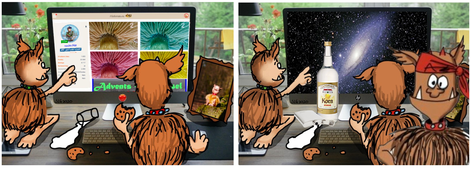 • Wenn Gnixie-Pixie aber erklärt, warum auf ihrer Phorphal-Collage am 20.12. die Regler-Gnolme nicht nur die Milchstraße sehen, sondern die Milch aus einer Schnappsflasche läuft, könnte man eventuell was regulieren....