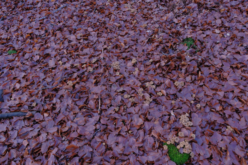 Das Laub unter den Füßen war zwar letzte Woche schon weitgehend trocken, aber heute erinnerte es an schlimmste Knack und Knirschgeräusche aus dem heißen Hochsommer. Und das in der absoluten Hochsaison. Fast schon Waldbrandgefahr!!