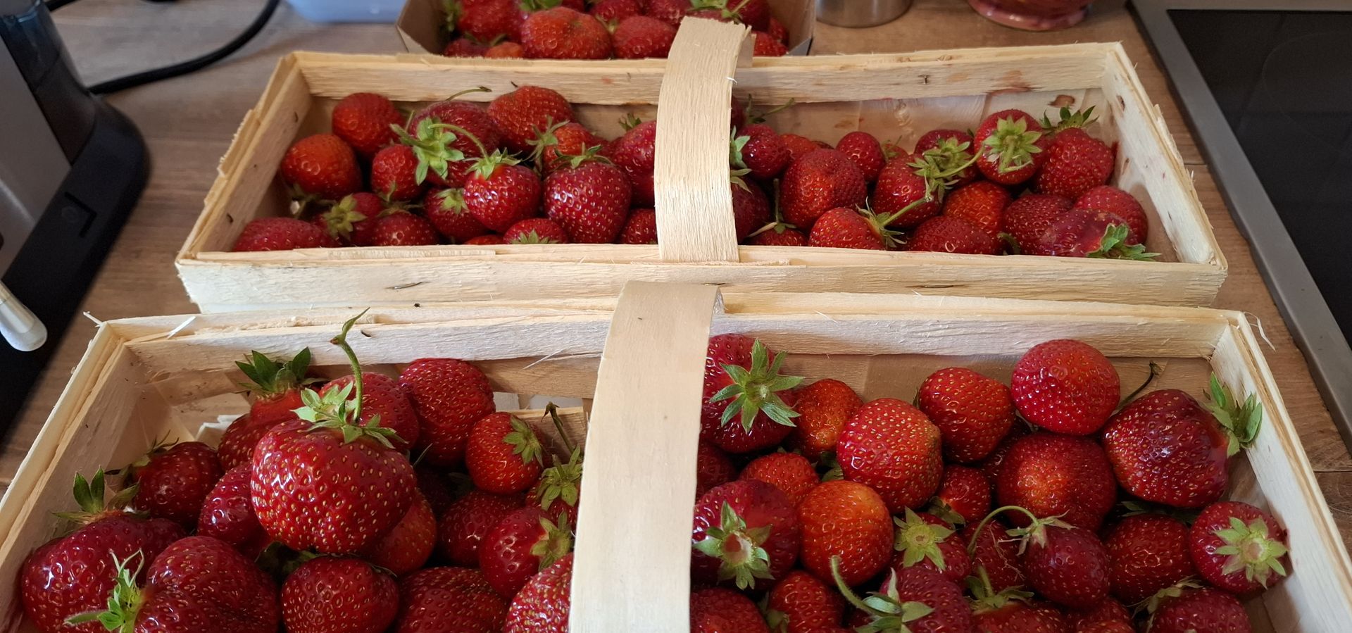 War vorhin bei meinem kleinen Bio-Erdbeerbauern auf dem Dorf, meine Lieblingserdbeeren sind reif, Sorte Honeyoye.