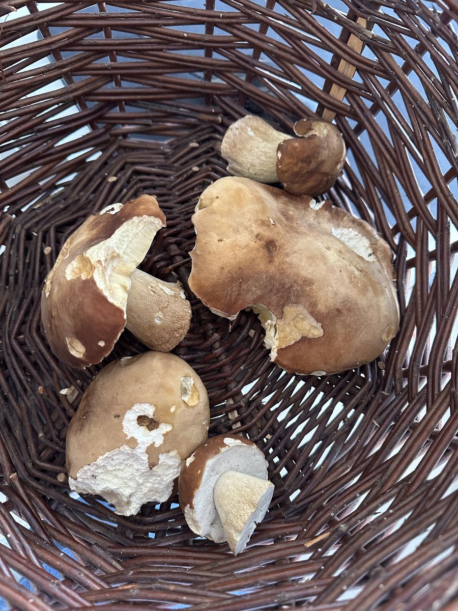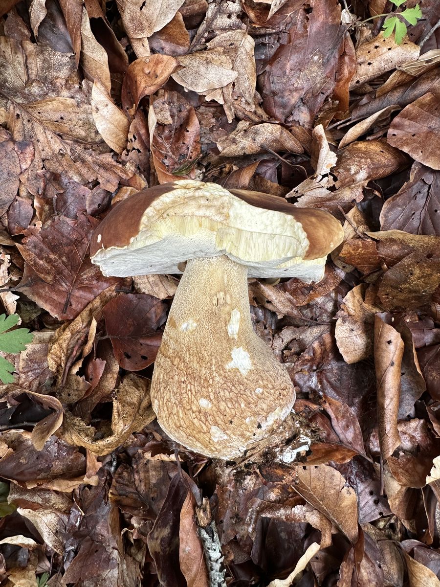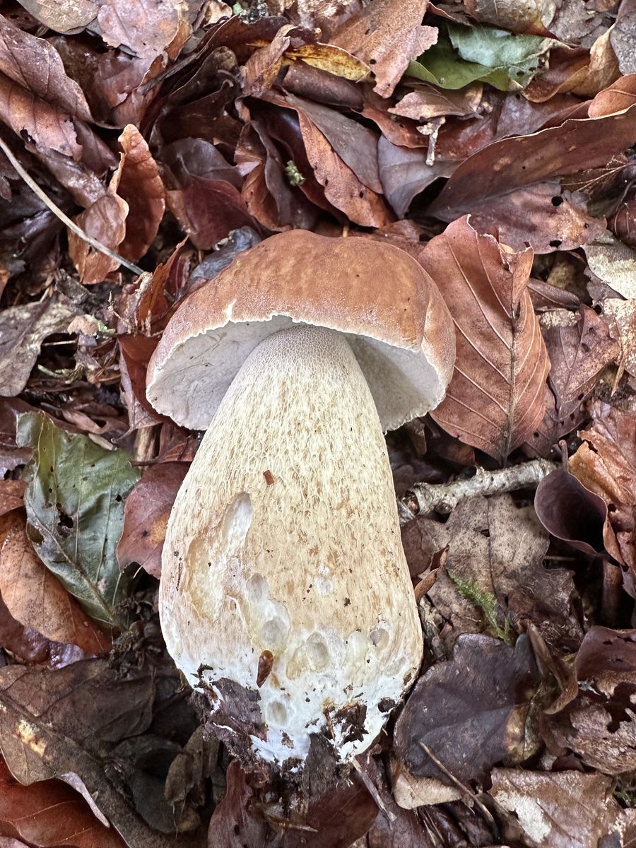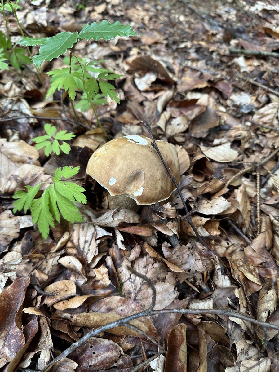 Ich weiß, die Bezeichnung ist irreführend. Normalerweise sage ich auch Sommersteinpilz. Fand ich nur in diesem Kontext passend. Neben dem Steinpilz stand eine einzelne riesige Eiche und in einem Radius von 8 - 10 Metern waren keine anderen Bäume, von daher gehe ich davon aus, dass diese Eiche auch der Symbiosepartner war. Obwohl es theoretisch natürlich auch eine Buche etwas weiter weg gewesen sein könnte