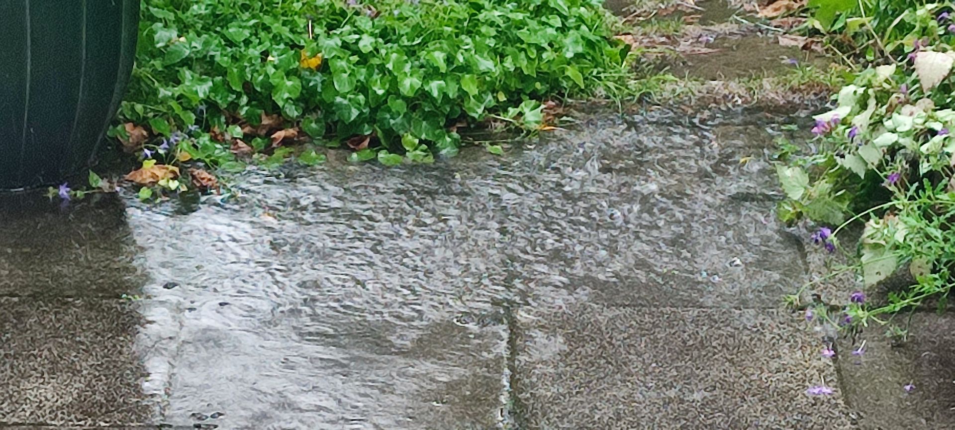 Du hast recht. Es kamen 1,4 Liter innerhalb von fünf Minuten herunter. Jetzt scheint wieder die Sonne.