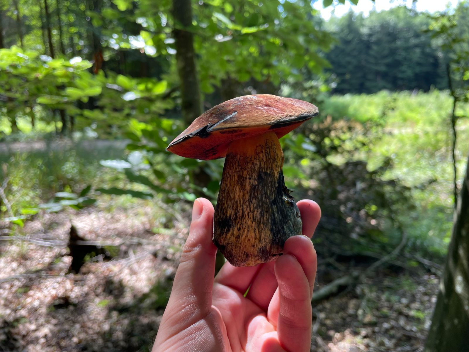 • Heute gab es eine ausgedehnte Runde durch verschiedene Wälder. Die Steinpilze (Sommer und Fichte) machen sich weiterhin rar, dafür gab es einige schöne Hexenröhrlinge.