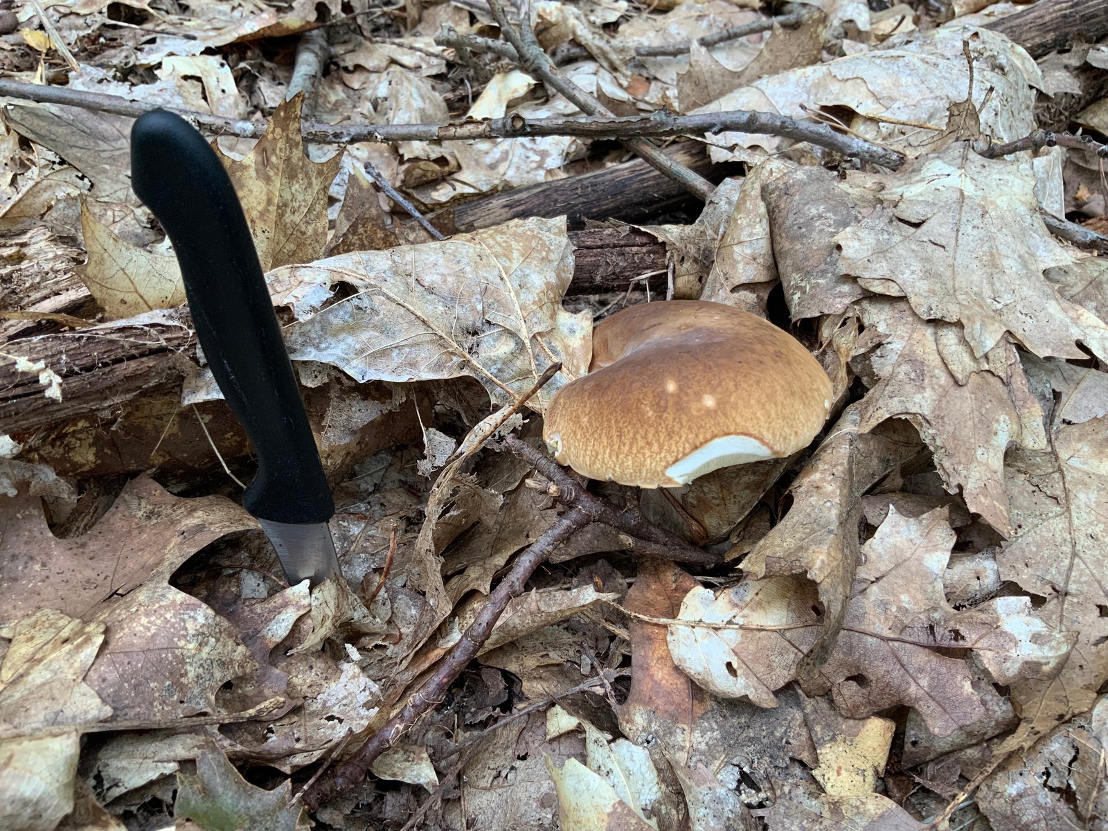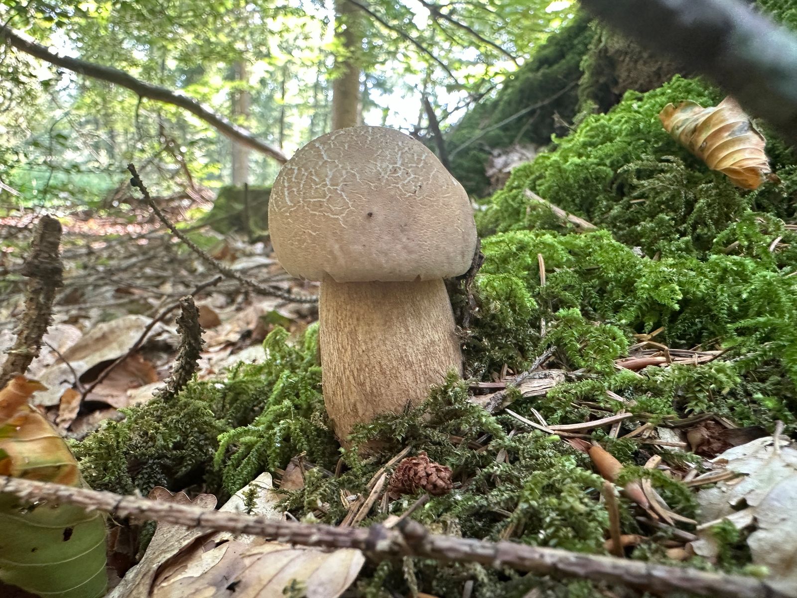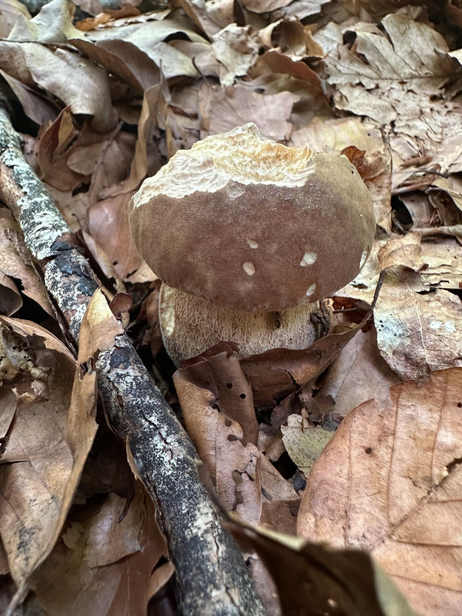 Ich ging etwas weiter den Hang hoch, und konnte dann doch 4 kleine Exemplare finden. Leider recht madig im Stiel (wie üblich), aber die Hüte konnte man durch großzügiges sezieren retten.