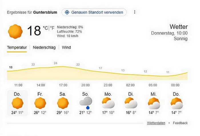 hier oben gibt es am Samstag als Eintagsfliege vielleicht so 24-25°C. Am Sonntag ist der Spuk bereits vorbei. Es reicht auch ein schneller Windsprung von SW auf NW ohne großen Regen. Hatten wir hier zuletzt immer öfter.