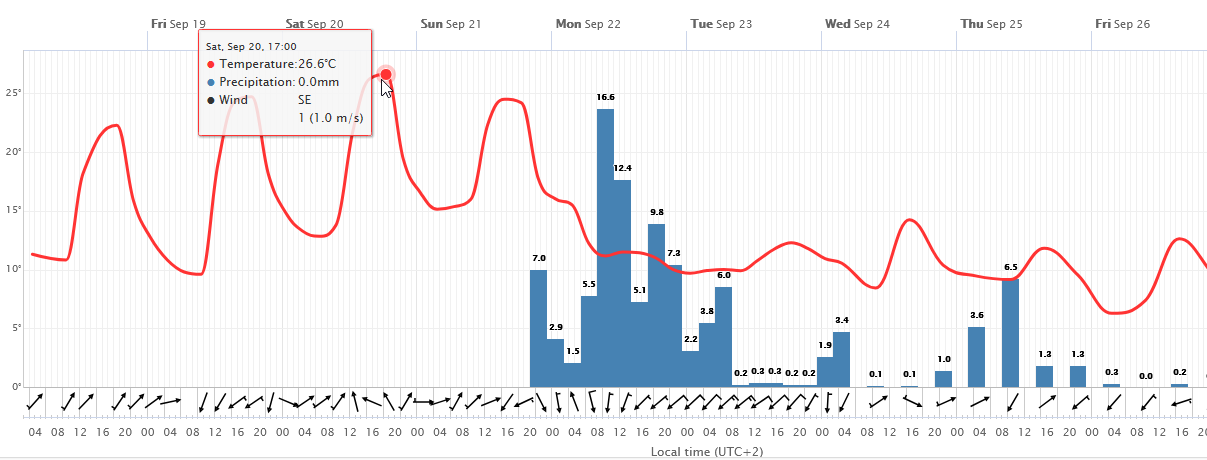 Bei beiden kommt dann aber in der Nacht auf Montag der Knick mit ergiebigen Niederschlägen. Hoffen wir mal auf langanhaltendes Herbstwetter ohne Frost, damit die Saison den Oktober über hält.