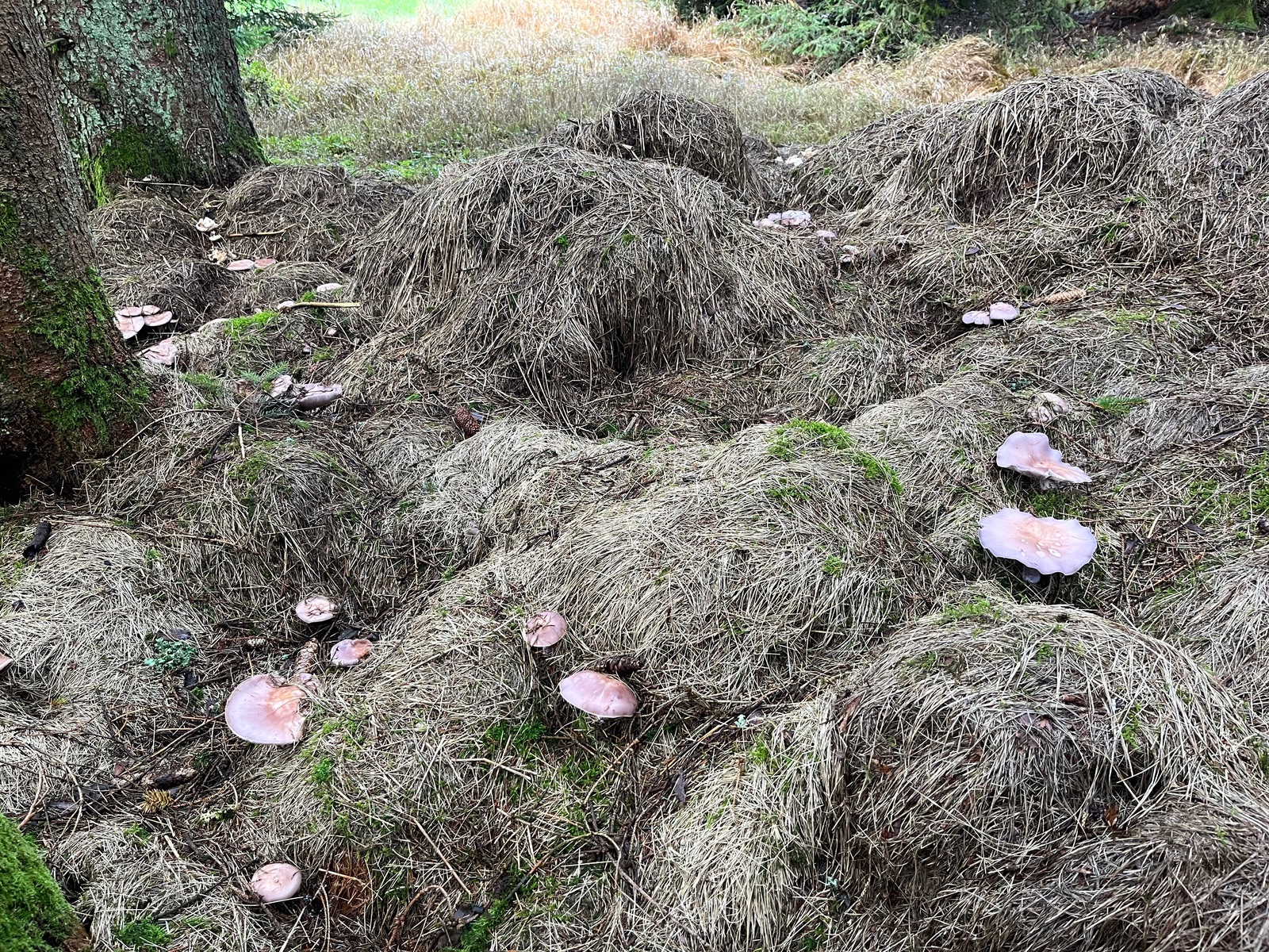 Hallo Wolfgang, bei uns betreiben die Landwirte zunehmend Vertragsnaturschutz, sprich sie leben von den Fördermitteln die sie für das Mähen der Bergwiesen bekommen. Einige entsorgen den Grünschnitt im Wald und Röteltrichterlinge, Rötelritterlinge und Nebelkappen finden das toll.