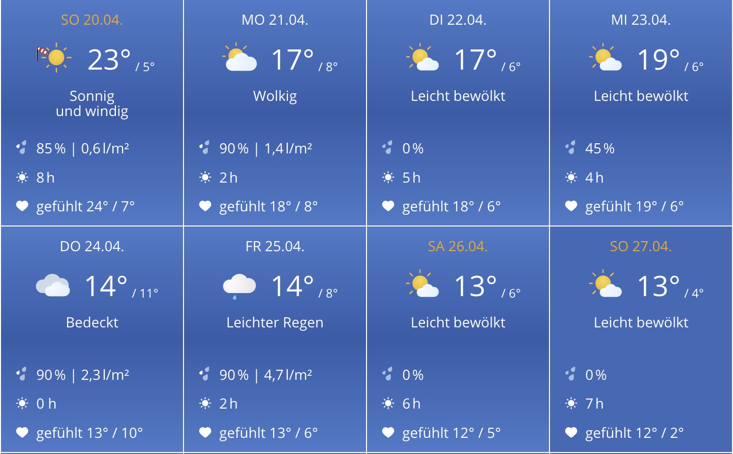 für Do. und Fr. ist wirklich Regen vorhergesagt.