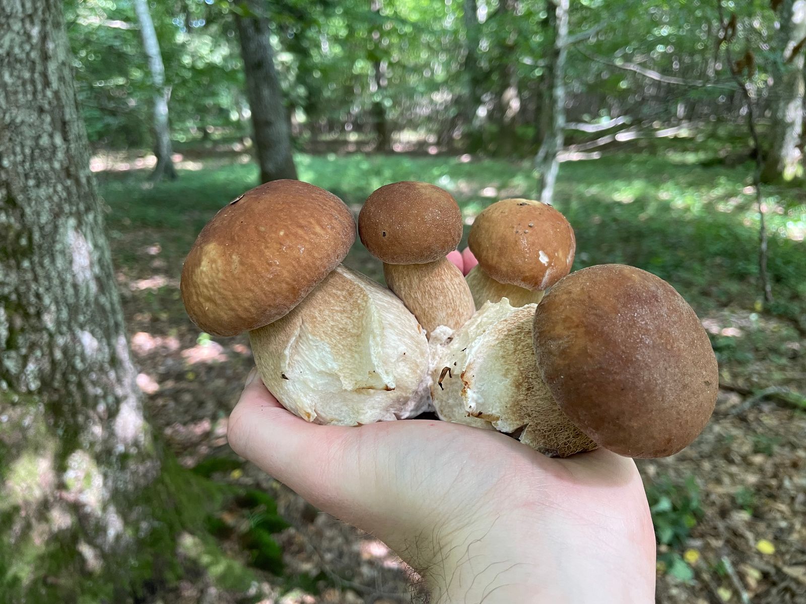 • Heute gab es eine ausgedehnte Runde durch verschiedene Wälder. Die Steinpilze (Sommer und Fichte) machen sich weiterhin rar, dafür gab es einige schöne Hexenröhrlinge.