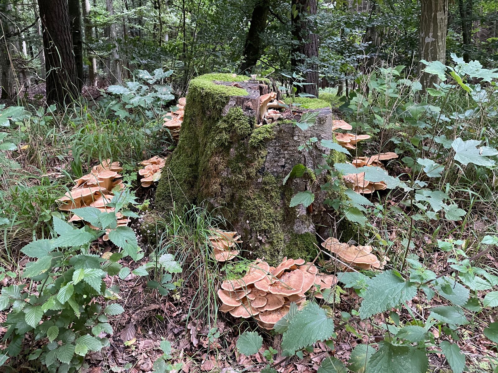 Aktuell kenne ich hier 7 Stümpfe wo es ähnlich aussieht. Offenbar mag die Art das Wetter heuer sehr. Bin gespannt, ob die Schwefelporlinge im Herbst auch nochmal so abgehen. Im Sommer sind sie komplett ausgefallen. Nur im Frühling gab es reichlich.