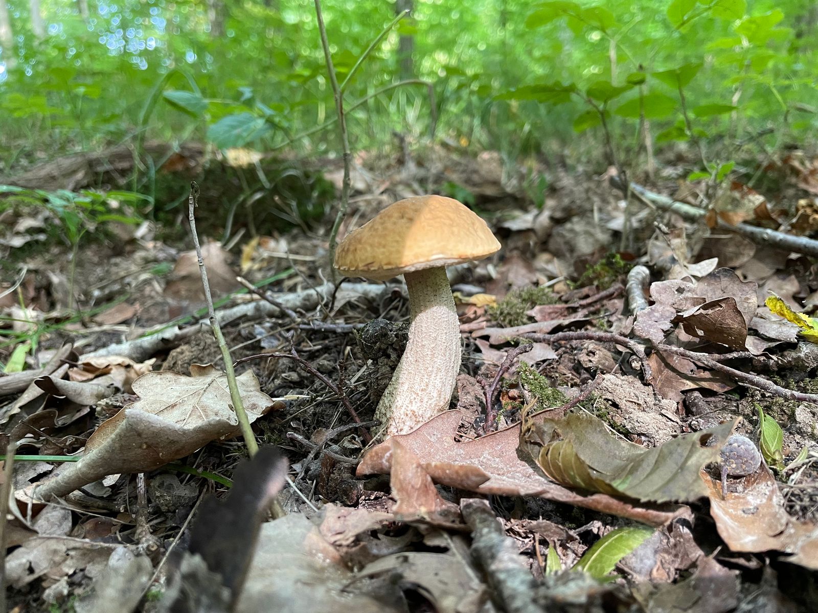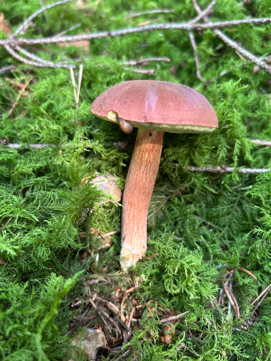 Bei dem hier gehe ich vom Bronzeröhrling aus. Ein etwas hell gefärbtes Exemplar, aber das Farbspiel ist dennoch irgendwo typisch. Und in der Ecke des Waldes kommt die Art auch vor. Wäre dann mein fünftes entdecktes Habitat im Hauswald.