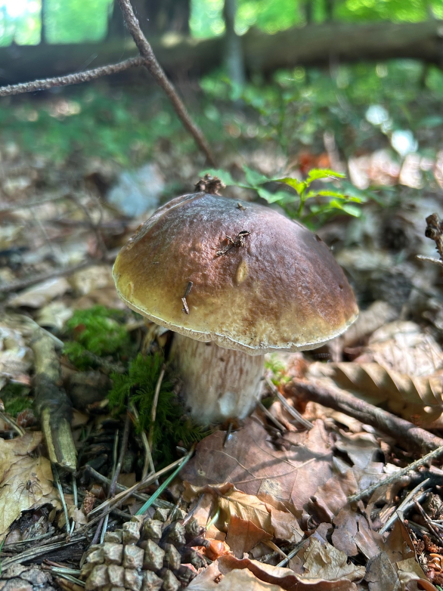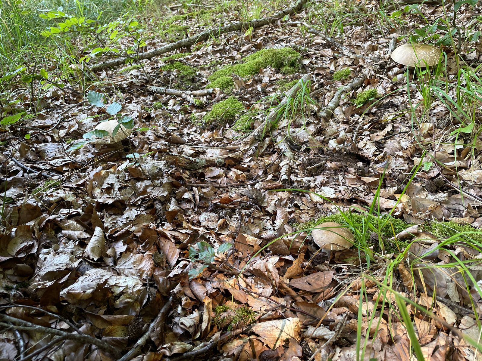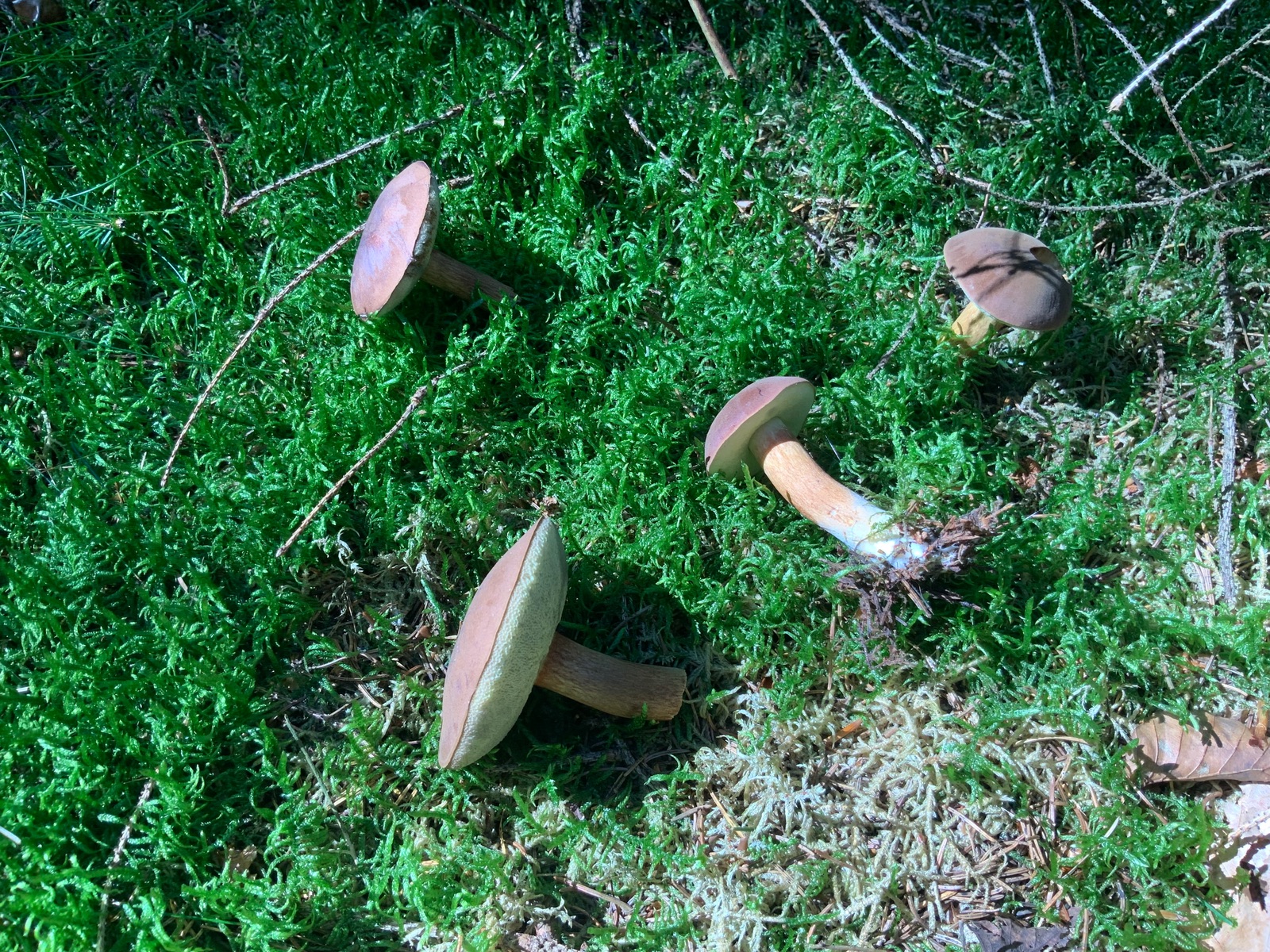Damit wir überhaupt irgendwas finden, bin ich mit dem Nachbarn zu meinem gut gehüteten Geheimplatz gefahren. Dort war vermeintlich auch noch tote Hose, allerdings konnten wir dann doch noch neben einem Fichtensteinpilz endlich einen einzelnen, winzigen Sommersteinpilz finden.
