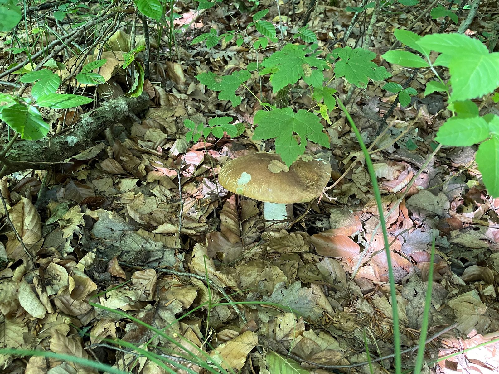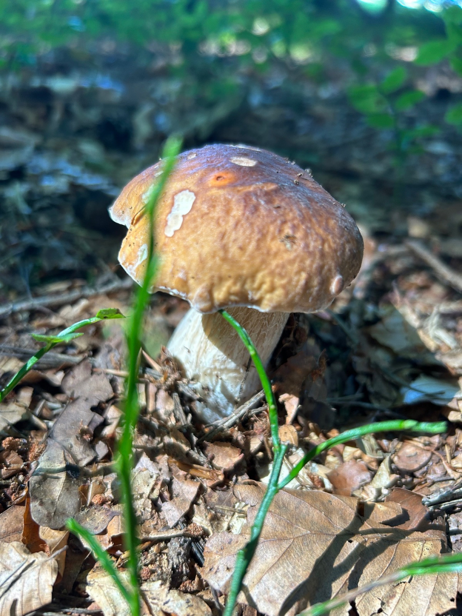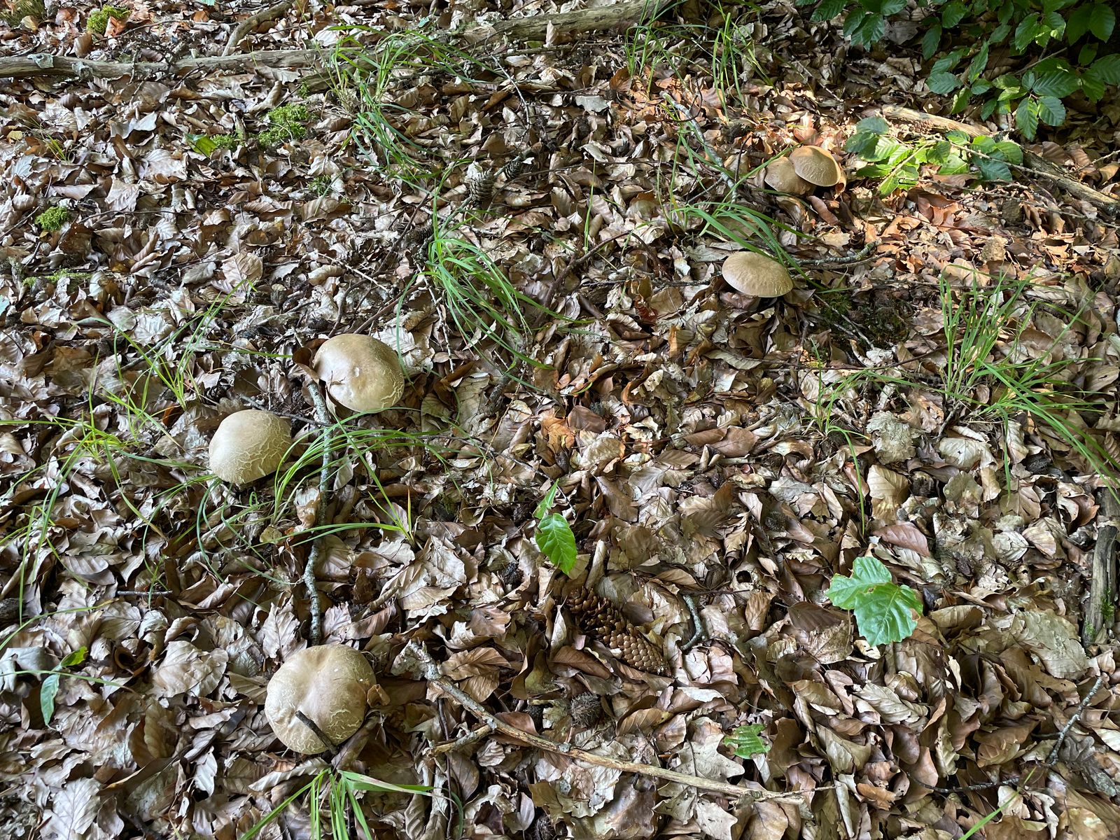 Damit wir überhaupt irgendwas finden, bin ich mit dem Nachbarn zu meinem gut gehüteten Geheimplatz gefahren. Dort war vermeintlich auch noch tote Hose, allerdings konnten wir dann doch noch neben einem Fichtensteinpilz endlich einen einzelnen, winzigen Sommersteinpilz finden.