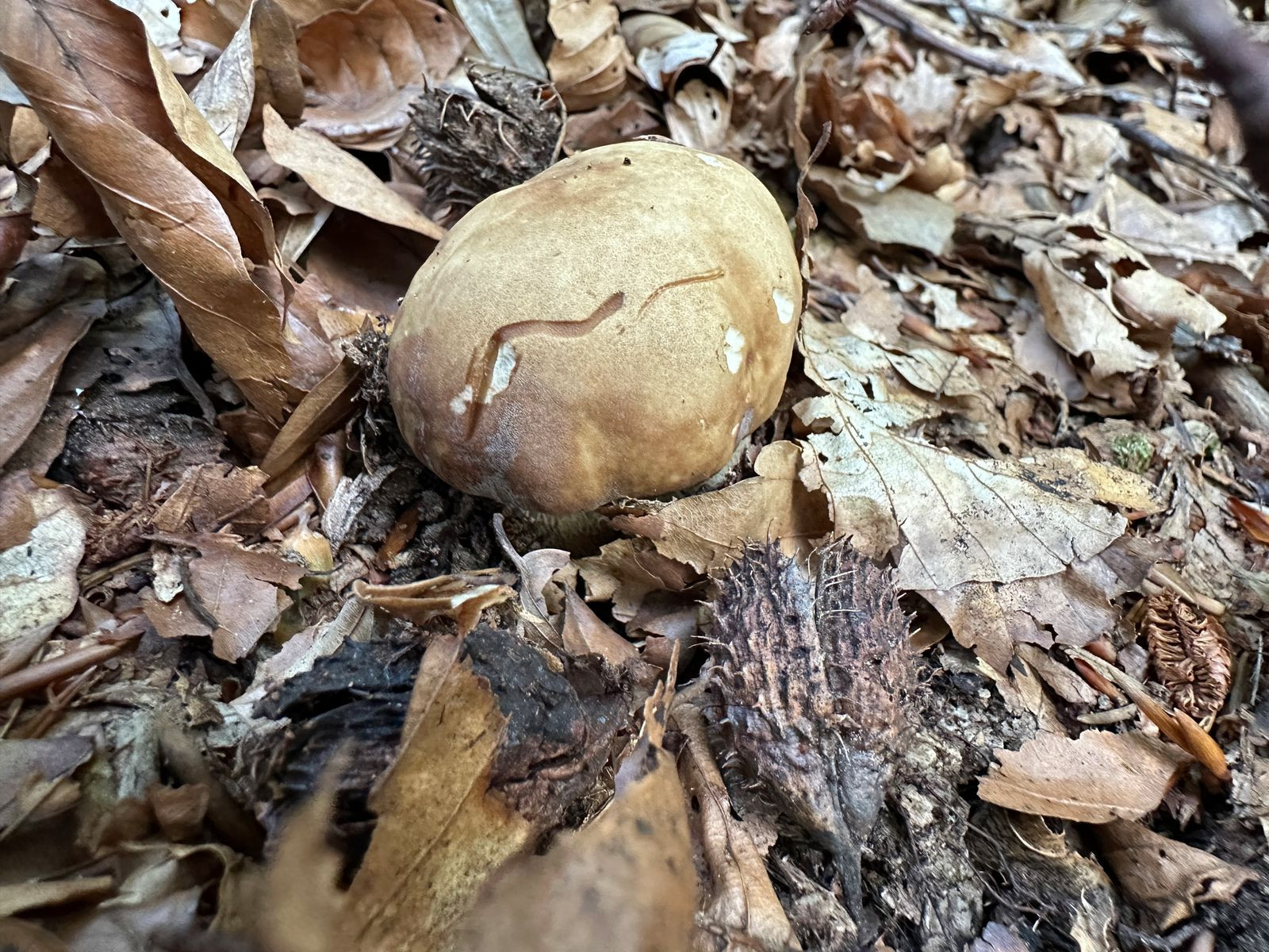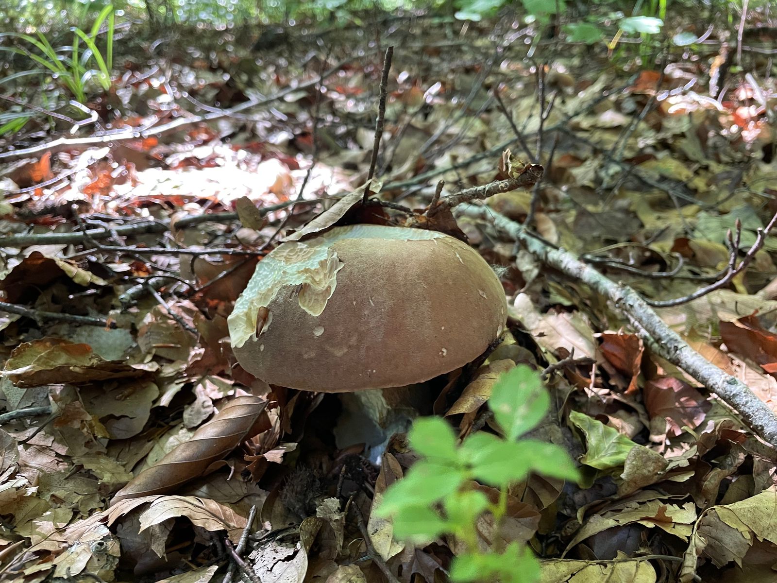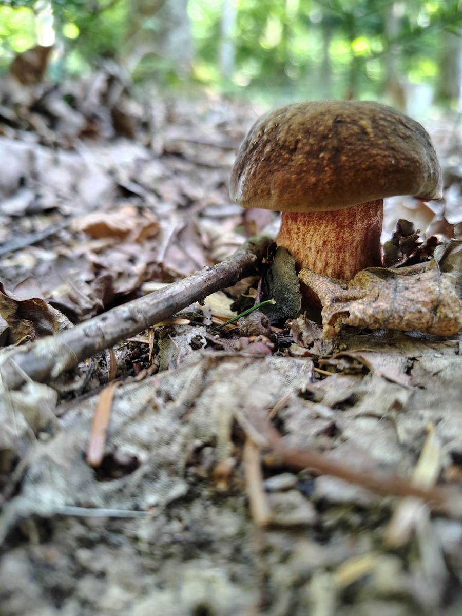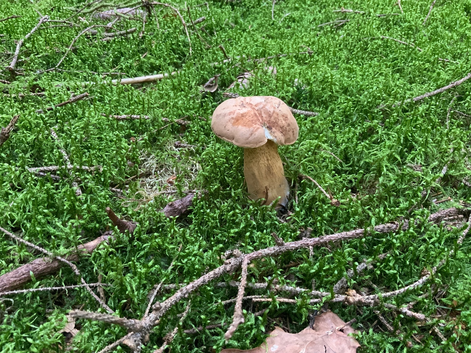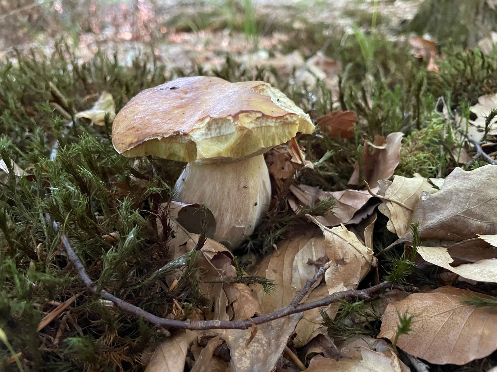 Bei dem hier gehe ich vom Bronzeröhrling aus. Ein etwas hell gefärbtes Exemplar, aber das Farbspiel ist dennoch irgendwo typisch. Und in der Ecke des Waldes kommt die Art auch vor. Wäre dann mein fünftes entdecktes Habitat im Hauswald.