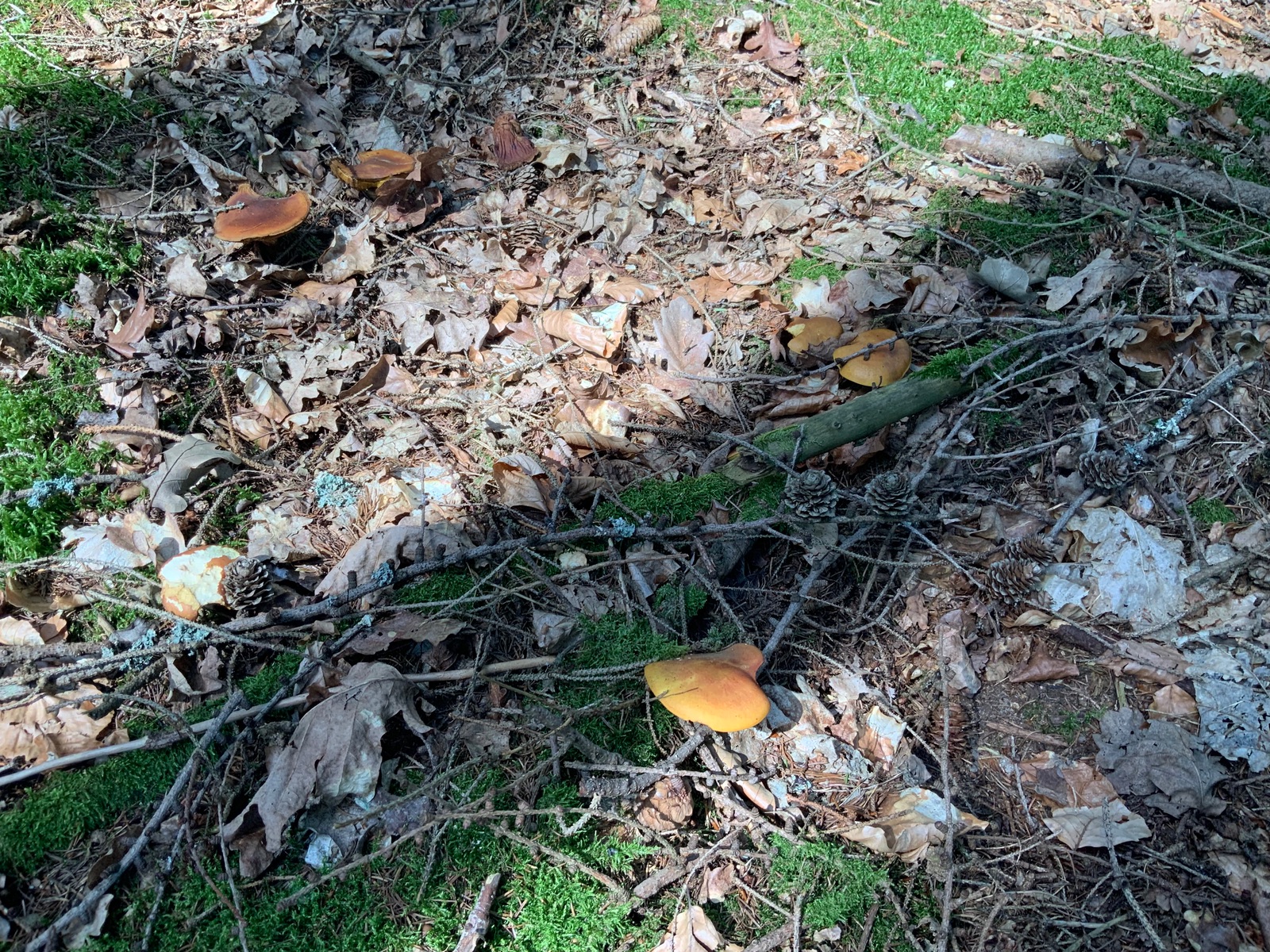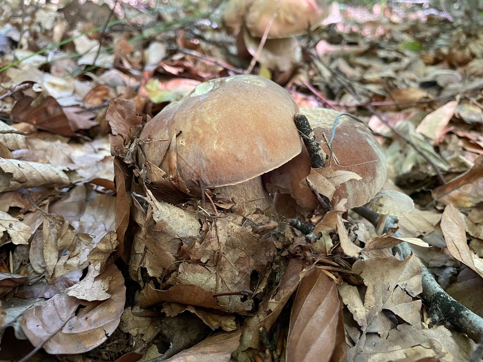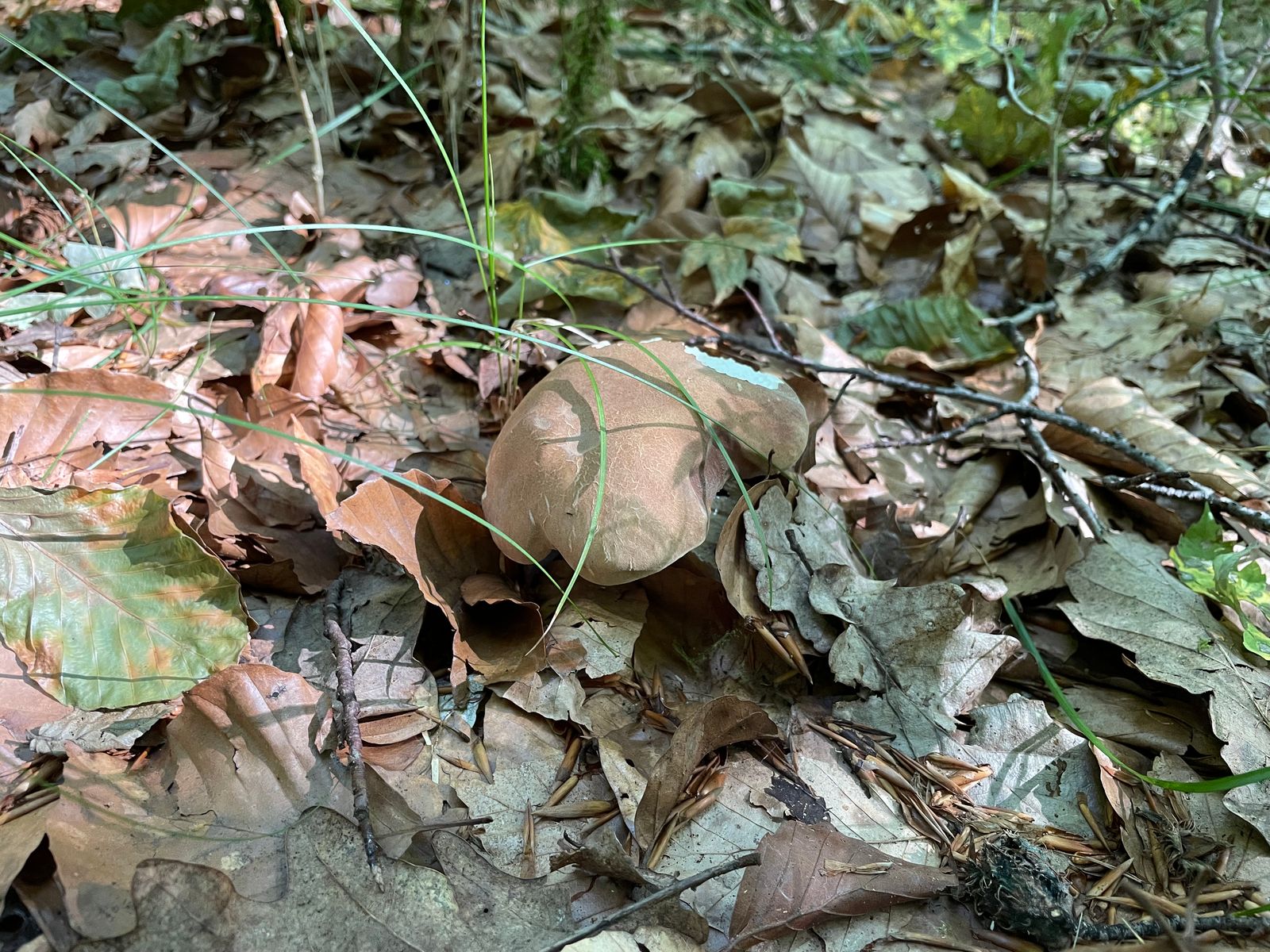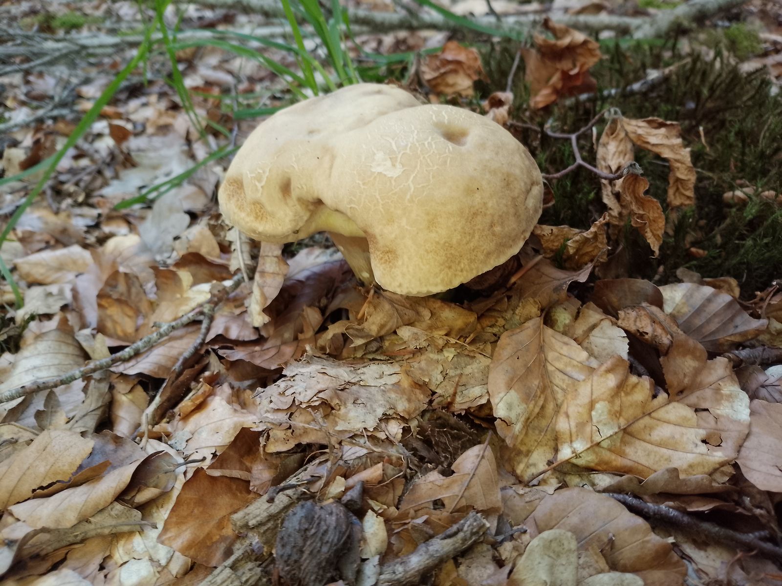Bei dem hier gehe ich vom Bronzeröhrling aus. Ein etwas hell gefärbtes Exemplar, aber das Farbspiel ist dennoch irgendwo typisch. Und in der Ecke des Waldes kommt die Art auch vor. Wäre dann mein fünftes entdecktes Habitat im Hauswald.
