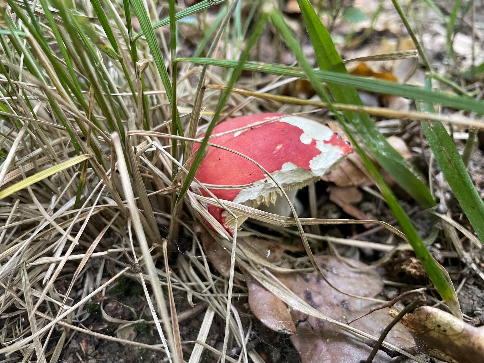 Hier und da ein paar frische kleine Pilze, aber >90% waren vertrocknet. Junge kugelige Täublinge, leicht wie Pappe. Knackt nicht mal beim Stiel durchbrechen, war eher so, als ob du eine Masse durch brichst, so leicht zäh.
