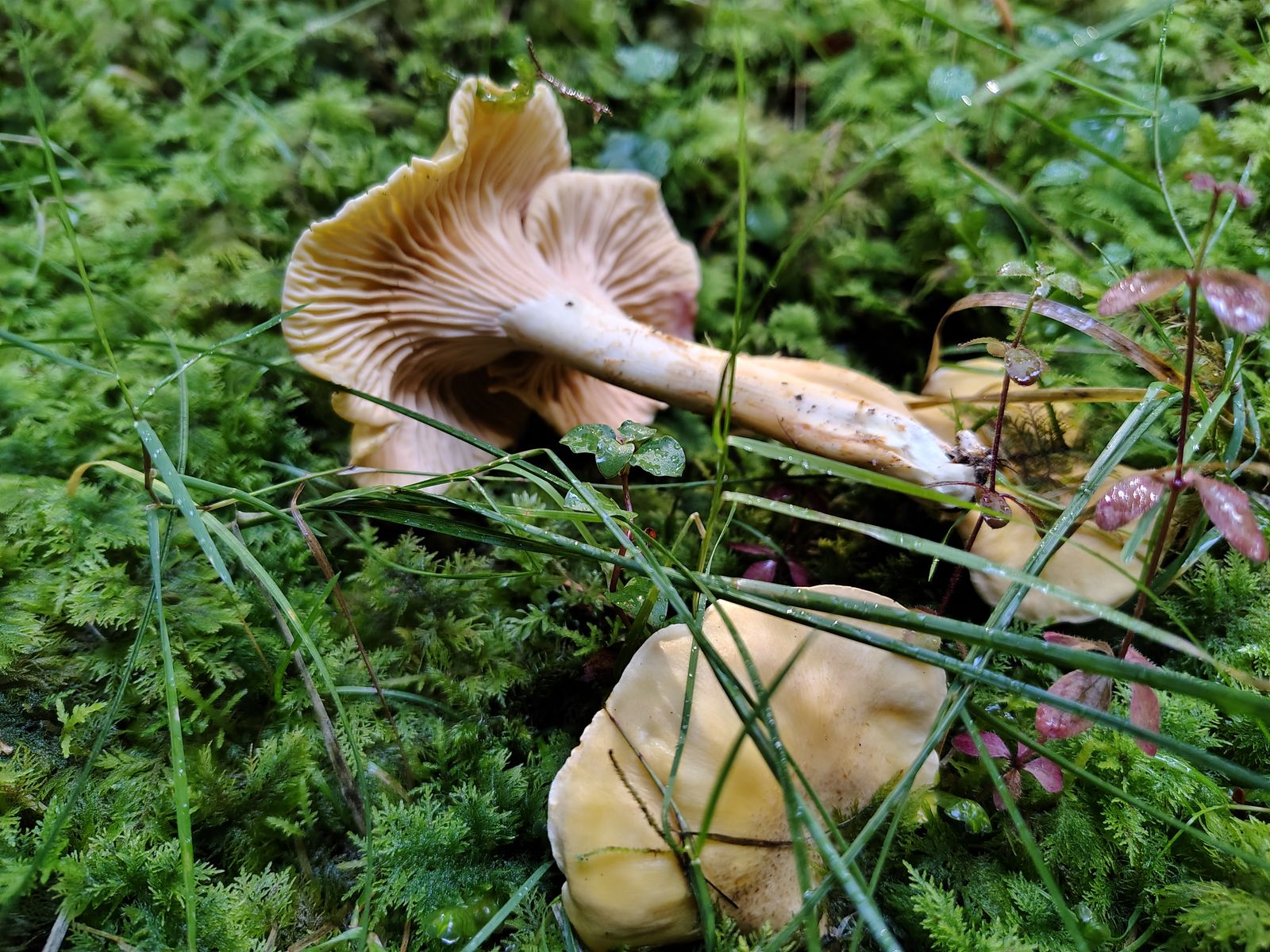 Ich war gestern in einem sauren Mischwald und konnte bei einer ganz jungen Rotbuche die ersten Trompetenpfifferlinge entdecken. Sie waren noch so zierlich, dass ich mir erst nicht sicher war, aber es sind definitiv Leisten vorhanden.