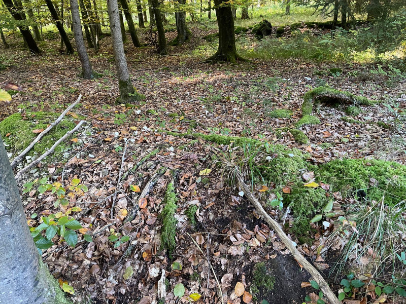 Bin mit dem Rad an meine Lieblingsstelle für Herbsttrompeten. Ein sehr lichtes Areal mit leichter Süd-West Hanglage mit einigen alten großen Buchen, dazwischen junge Buchen und viel Gras gemischt mit blanken Flächen wo es auch etwas Moos hat. Die Vorkommen der Herbsttrompete dort werden immer weitläufiger und haben letztes Jahr schon aus allen Rohren gefeuert. Auch dieses Jahr geht die Post ab und wie 2024 gibt es wieder Monster-Exemplare zu zeigen.