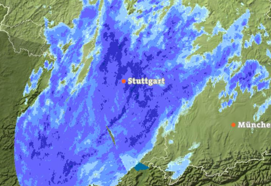 Hier gab es bisher 11 Liter und es soll noch bis zum späten Nachmittag weiter regnen.
