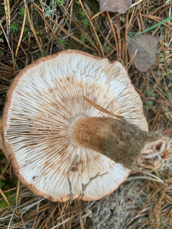 Ist das hier möglicherweise der fastberingte Ritterling? Davon standen einige als Gruppe im Kiefernwald.