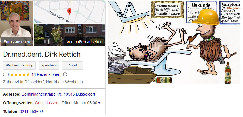 16---> GI auf Schwarzgezähnelter Rettichhelmling (17) mit der Zahnarztpraxis und Wandbild mit der Tel.-nr. zu Dr. med. dent. Rettich (siehe Anhang);