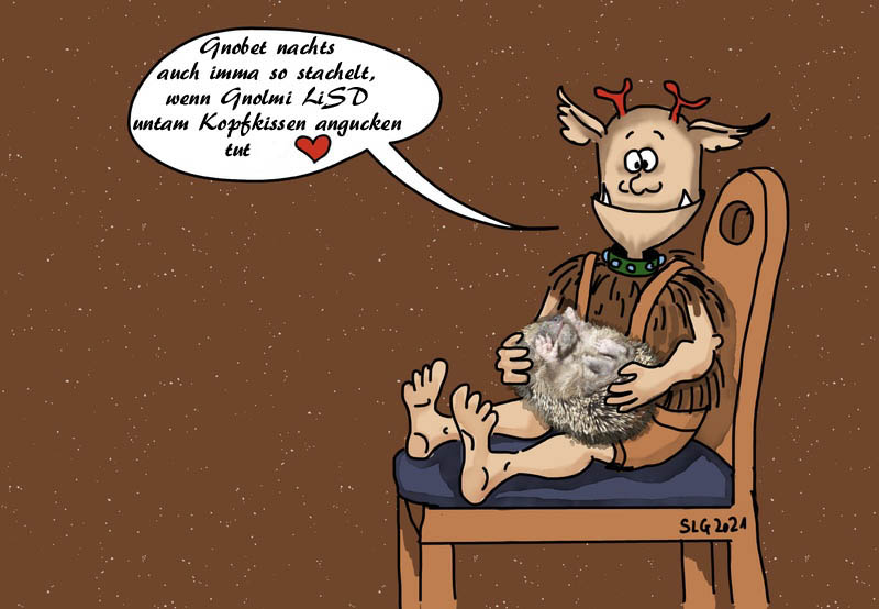 25---> GI auf das Gehörn (24) mit dem Igel-Gnolm Hiasl, der auf dem Kopf auch sowas hat (siehe Anhang);