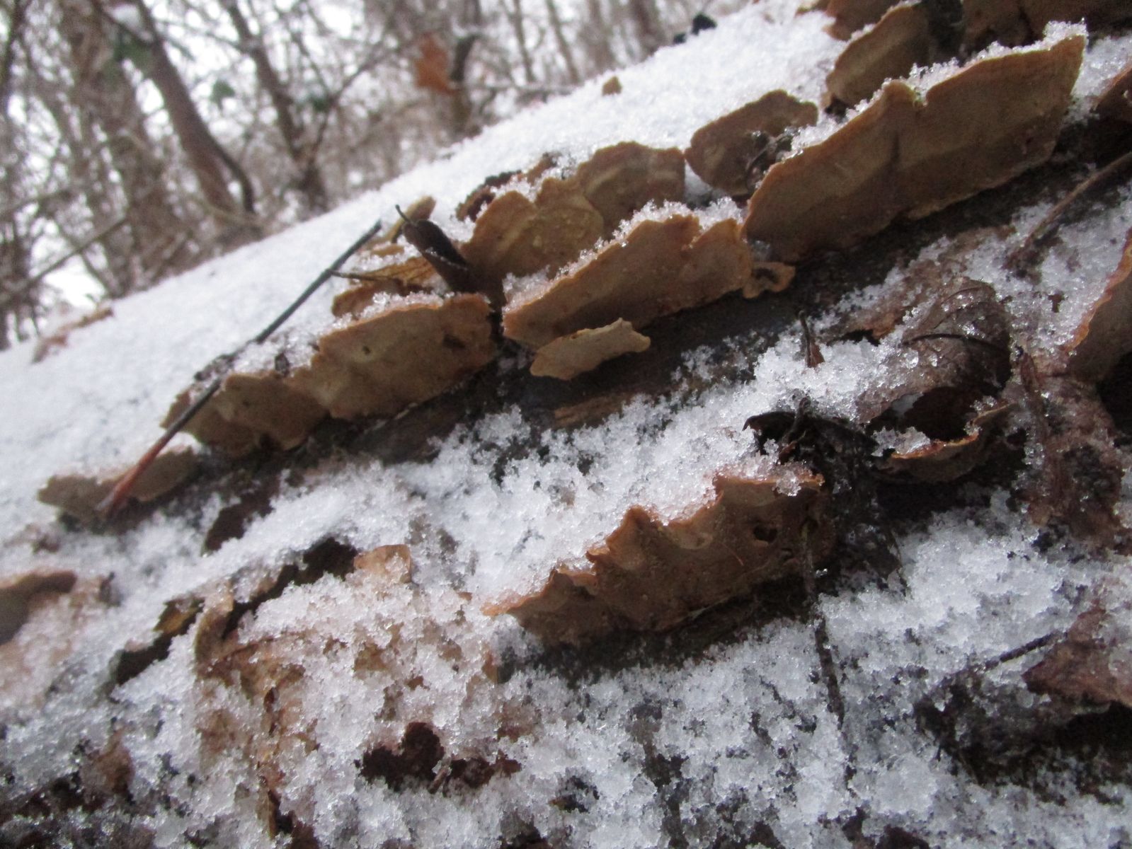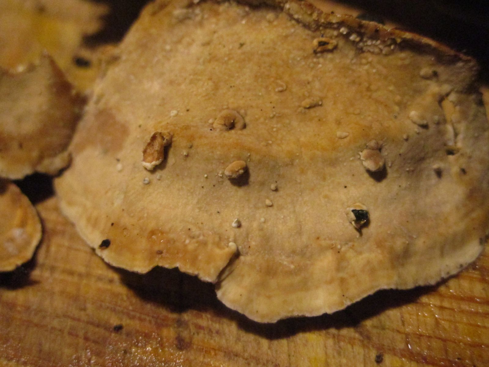 Also auf den Fotos kann ich leider nicht erkennen, ob die Fruchtschicht aus Poren besteht oder nicht - wenn nicht, würde ich irgendein "Stereum" raten - vielleicht subtomentosum?. Raten, wohlgemerkt.