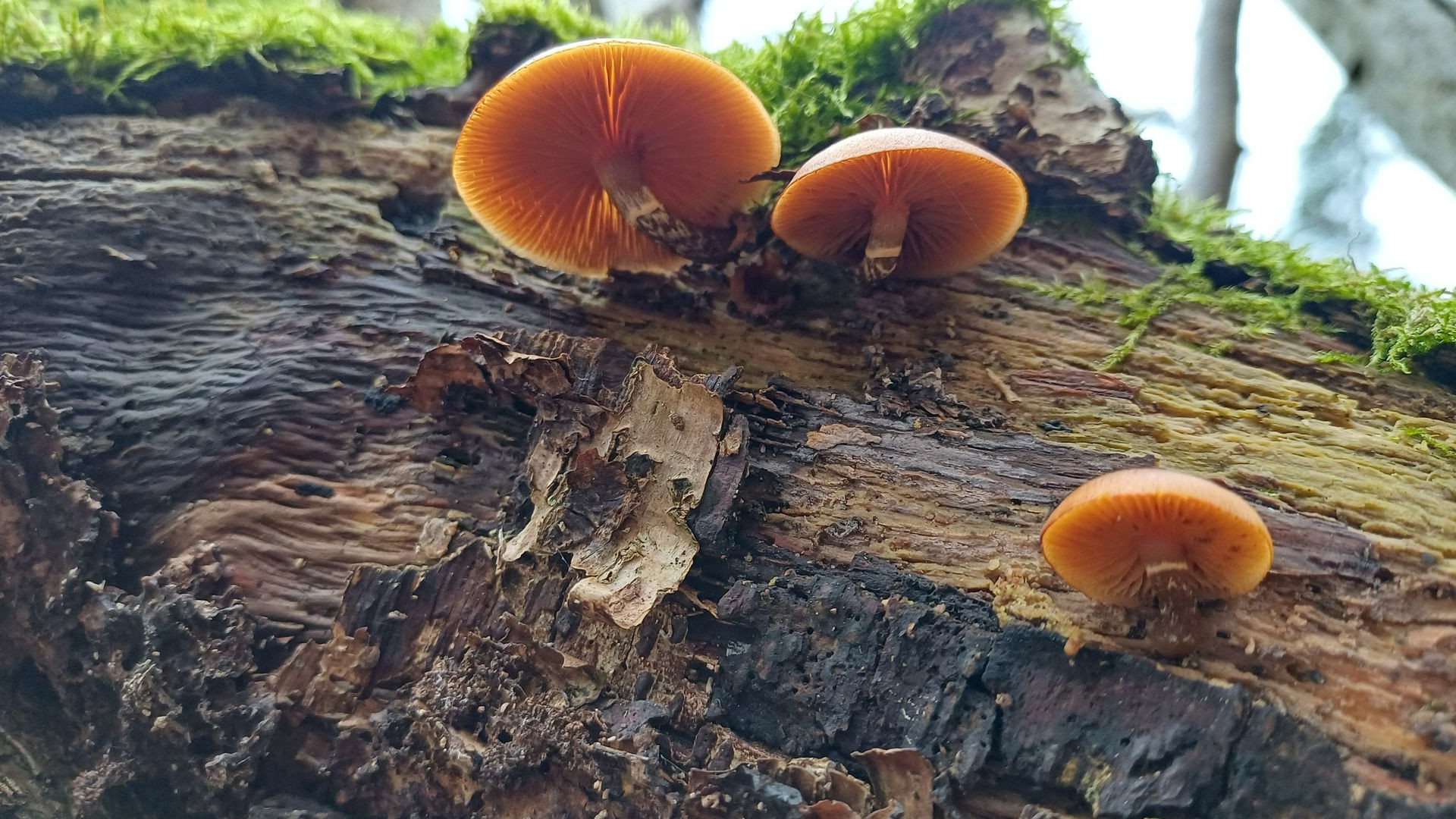 3 da sehe ich Phlebia radiata - Orangeroter Kammpilz
