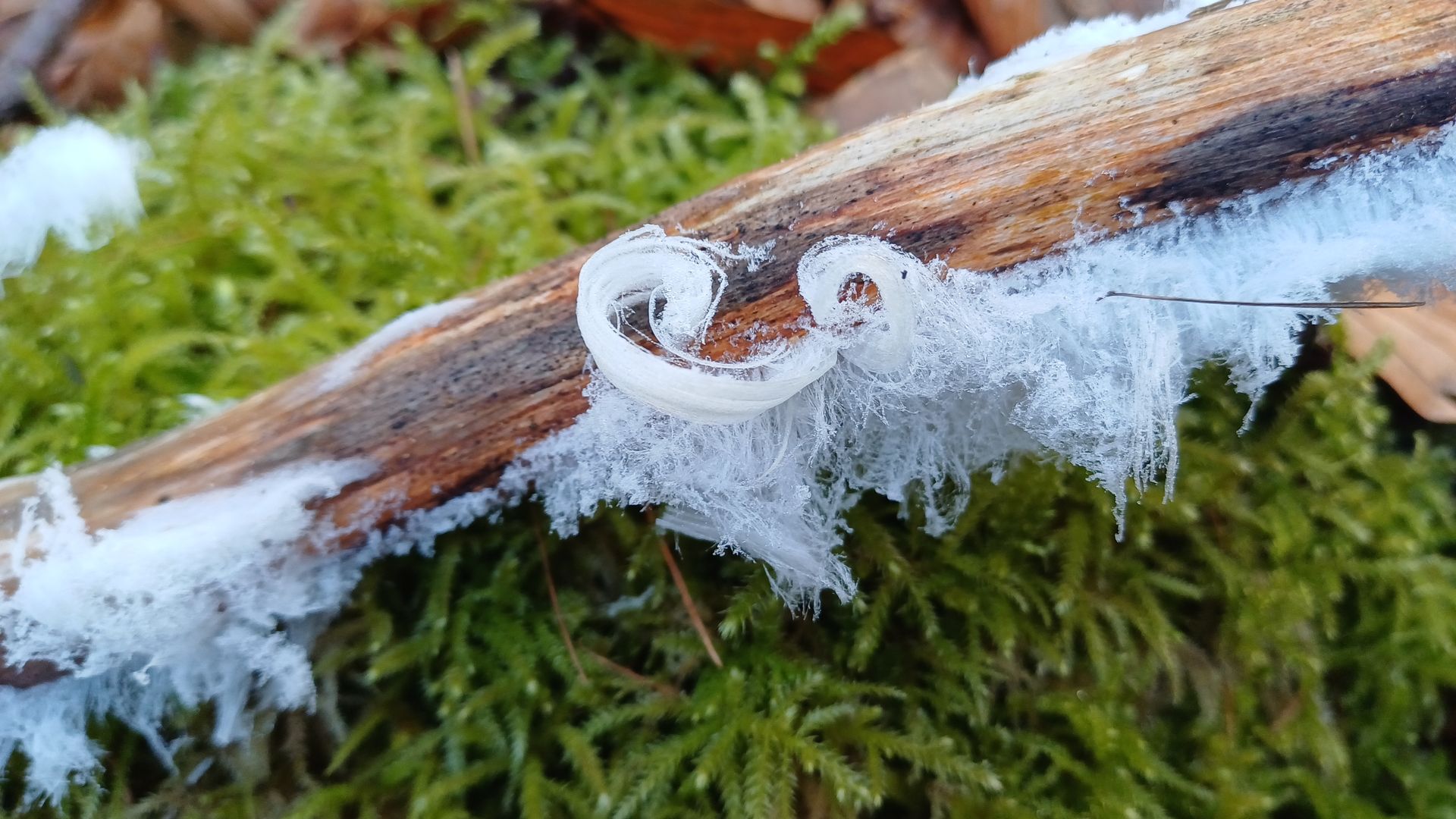 Und Haar-Eis: "Der gefrorene Atem von Holzpilzen" könnte man sagen.