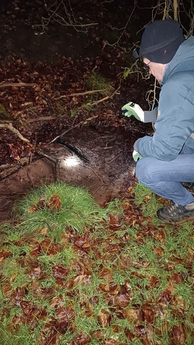 am Samstag-Abend, 25.1.2025, war ich, bei milden + 8 Grad und Regen, wieder auf Salamander-Nacht-Exkursion.