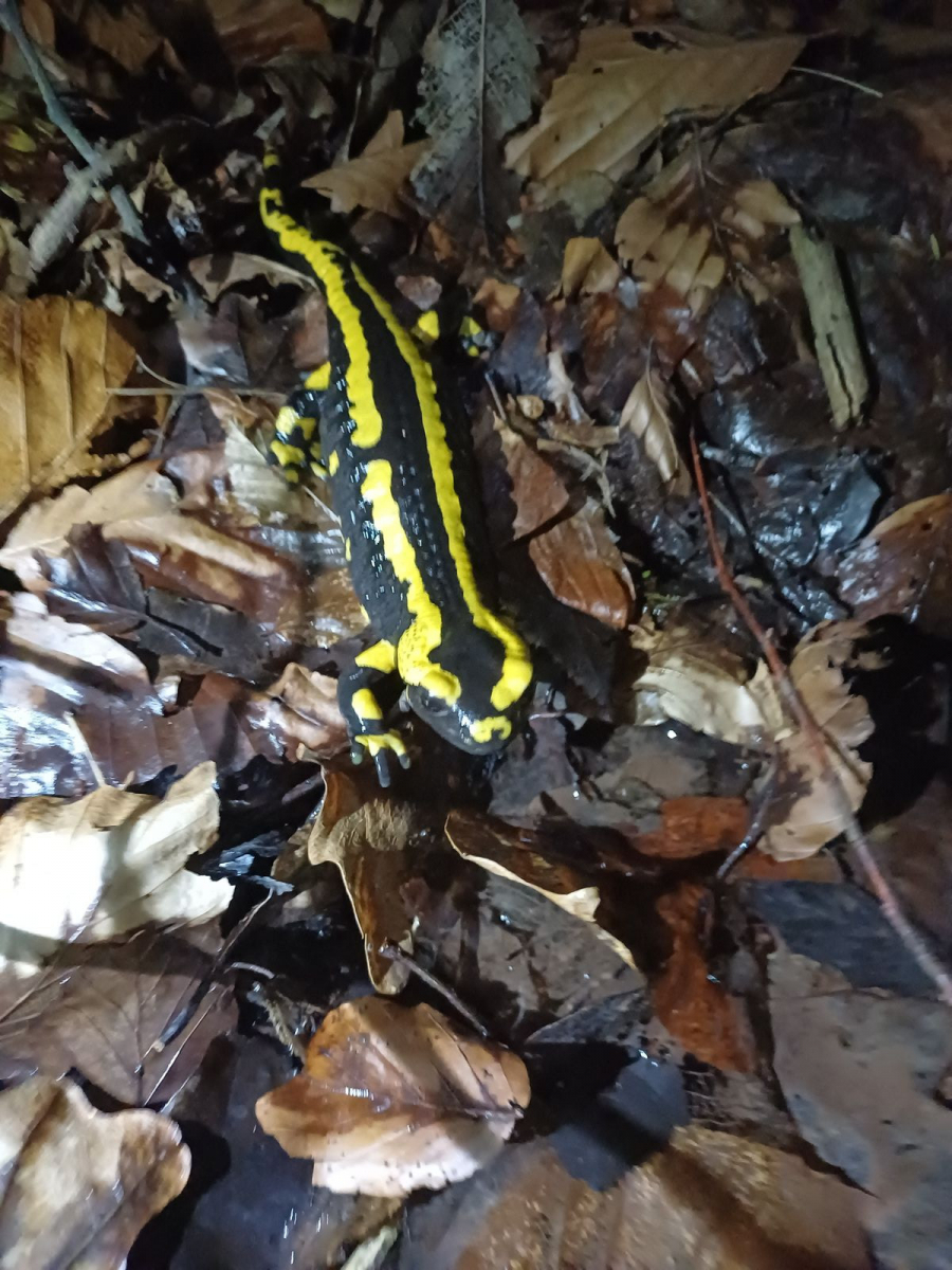 Es hatte am Tag geregnet, endlich auch mal so viel, dass das Laub feucht war. Also, bestes Salamander-Wander-Wetter!