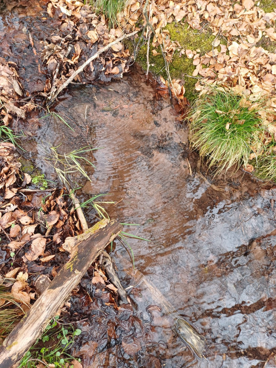 Fazit: Die Bäche führen fast alle extrem wenig Wasser. Das war früher eindeutig anders. Die Trockenheit dürfte das größte Problem für die Feuersalamander sein. Und Bsal, der Salamanderfresser-Pilz, kommt on top oben drauf.