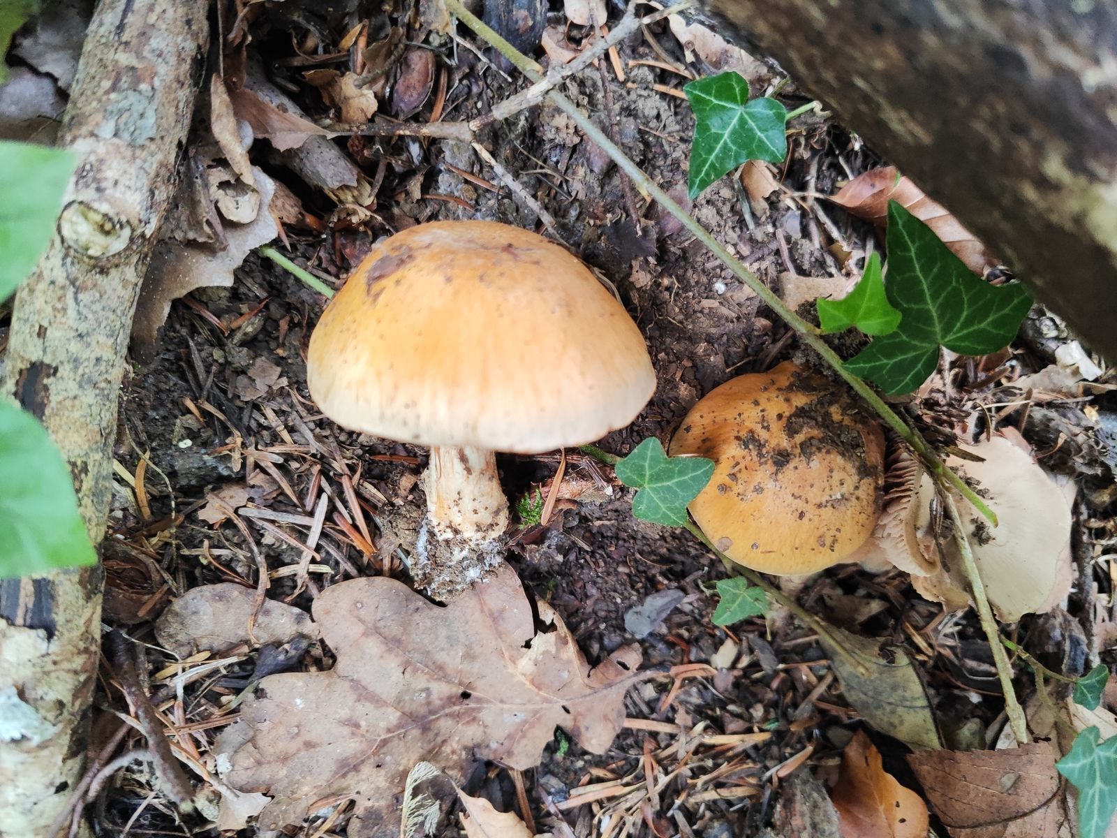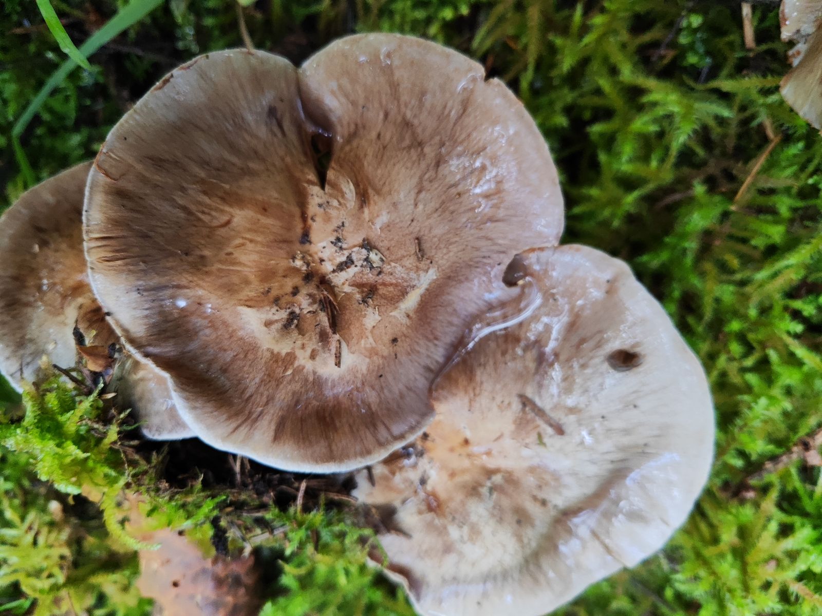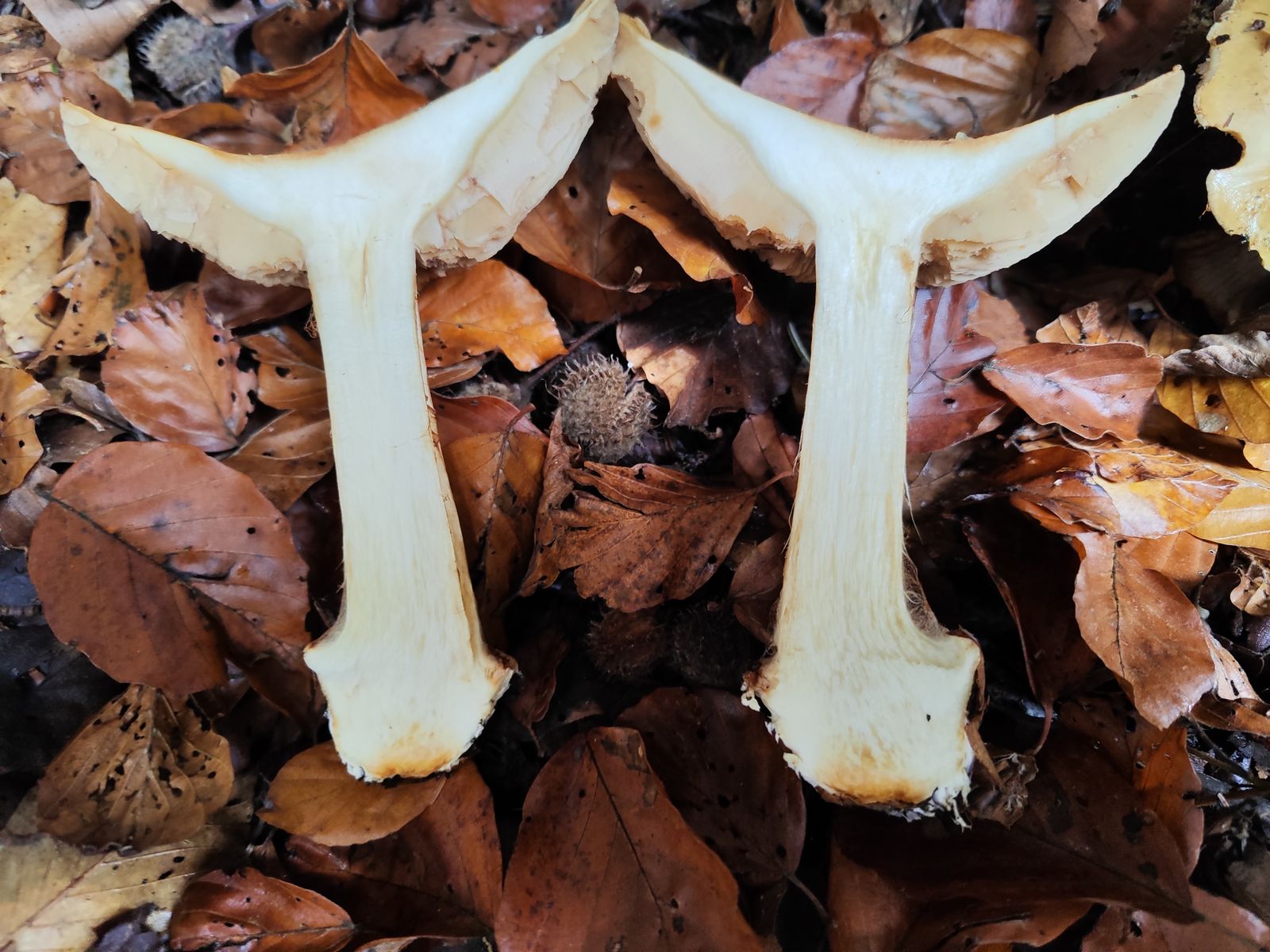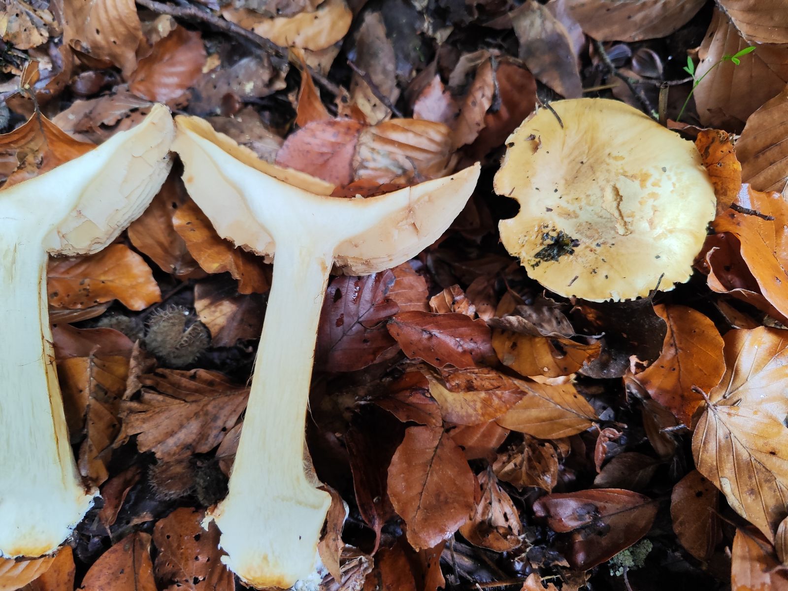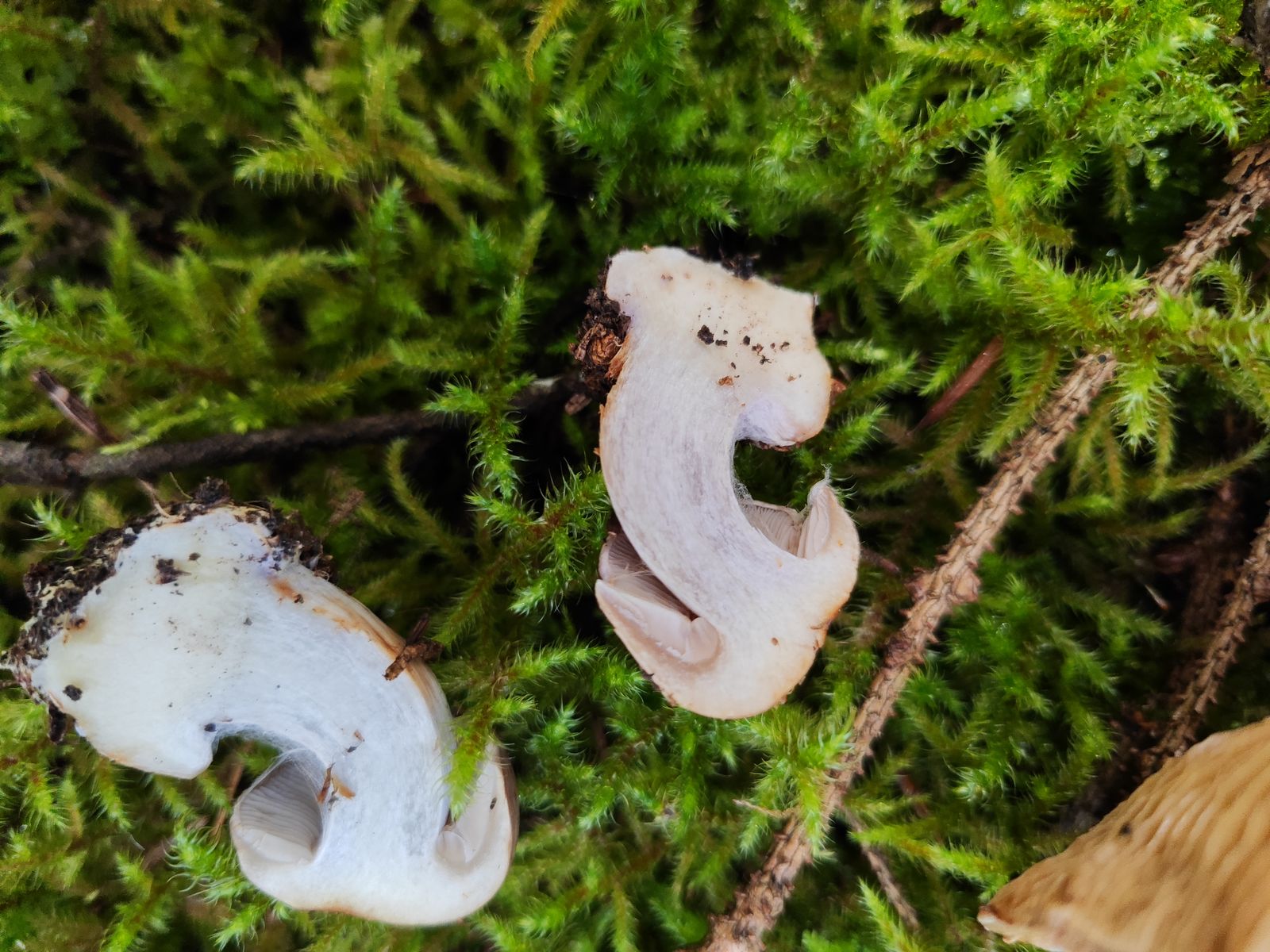 1. Der erste ist aus dem reinen Kalknadelwald bei Fichte und Tanne in der Nähe weiterer interessanter Phlegmacien wie C. aureofulvus, C. odorifer, C. terpsichores und mehr. Ziemlich ungewöhnliche Färbung, vor allem das junge Exemplar, Geruch und KOH unauffällig. Der kleine stand in allernächster Nähe zu den großen aber ich bin mir nicht mal ganz sicher ob der dazu gehört. Ich hab mir C. caesiocanescens angeschaut und auf iNaturalist meinte ein Cortinarius-kenner mal mit dem zu vergleichen. Der scheint auch irgendwo zu passen, allerdings finde ich recht wenige Fotos, die auch noch teilweise recht unterschiedlich aussehen zu der Art