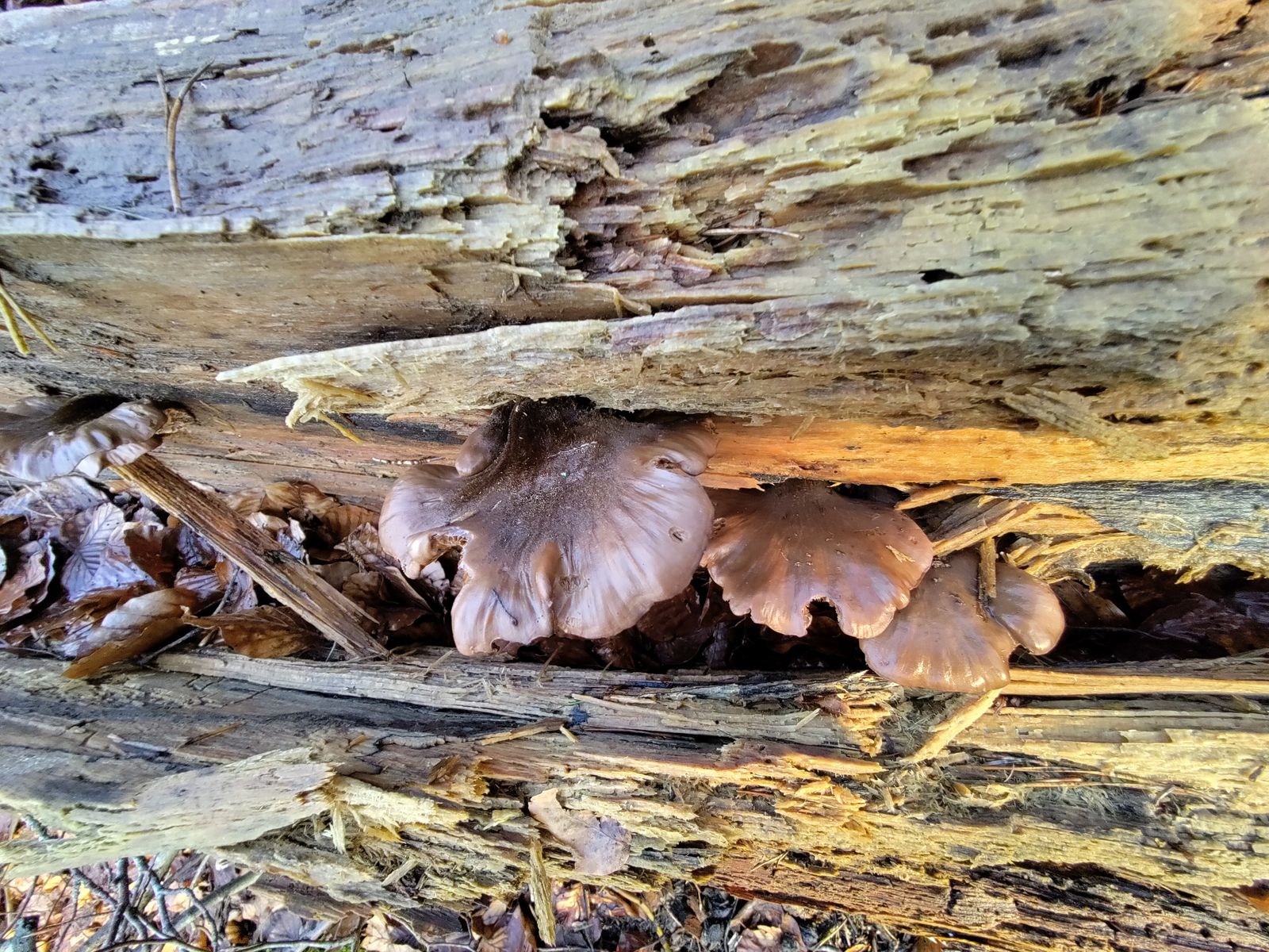 2) Dieser seitlingsähnliche Pilz an einem modernden, schon richtig weichen, liegenden Fichtenstamm würde ich gemäss meinen Recherchen als Zähling bezeichnen.