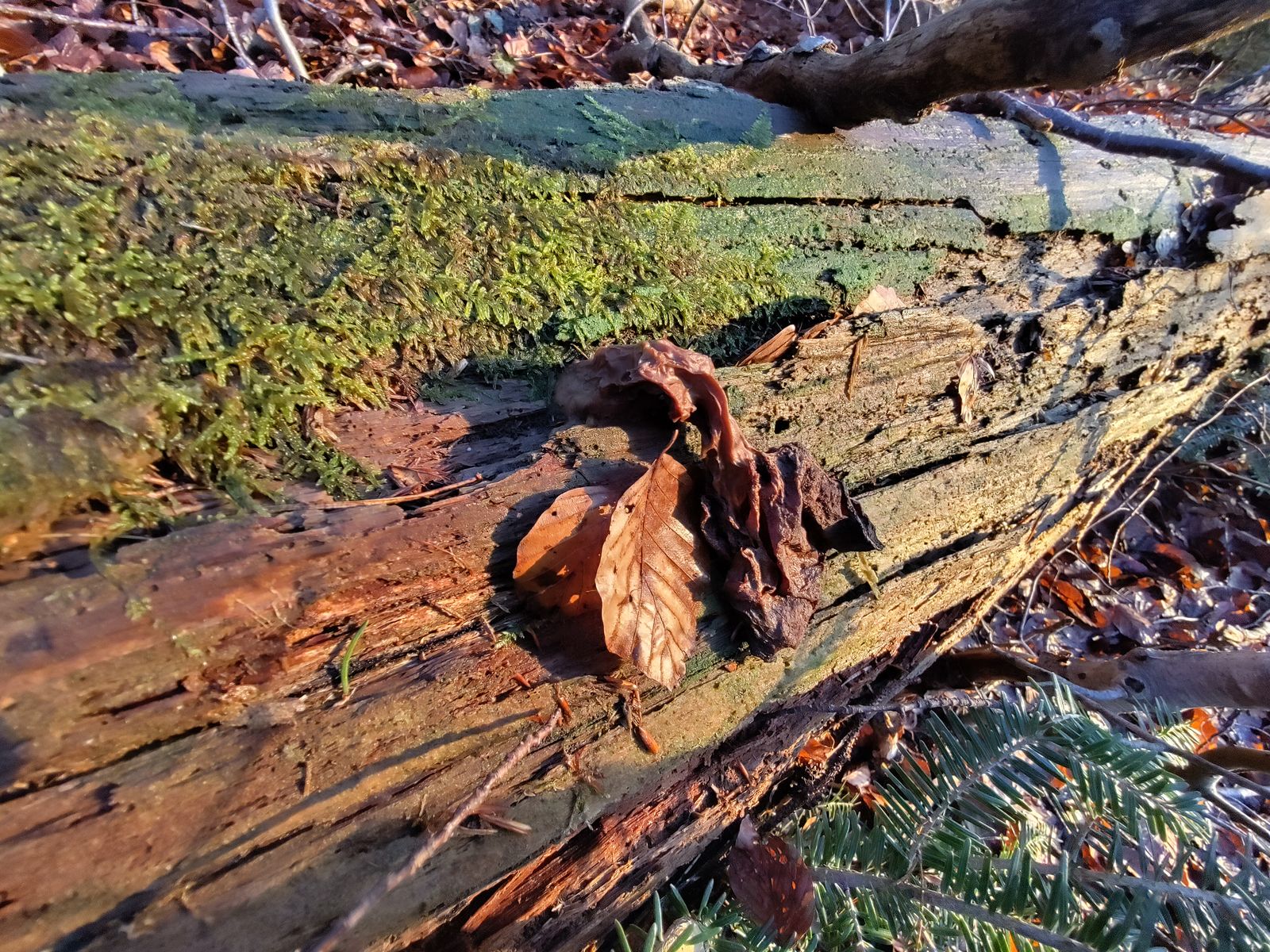 Erfreut durfte ich überdies feststellen, dass es an der Stelle, an der ich Ende November die prächtige Lorchel (mein Avatar) gefunden hatte, immer noch mehrere, vergammelte Exemplare an mehreren Baumstämmen und Wurzelstöcken zu sehen gab:
