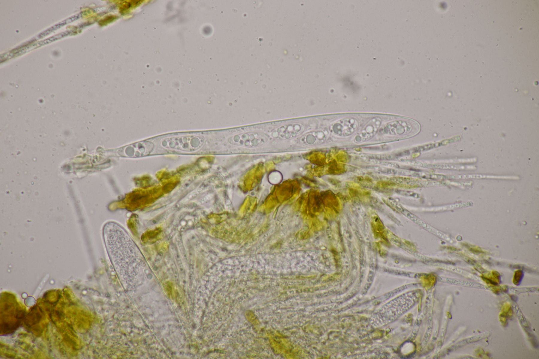 2. Dermea cerasi ex Prunus avium. Erstaunlich, wie sich mit etwas KOH der ganze Schmock auf den Fruchtkörpern löst, so daß man schöne Präparate bekommt.