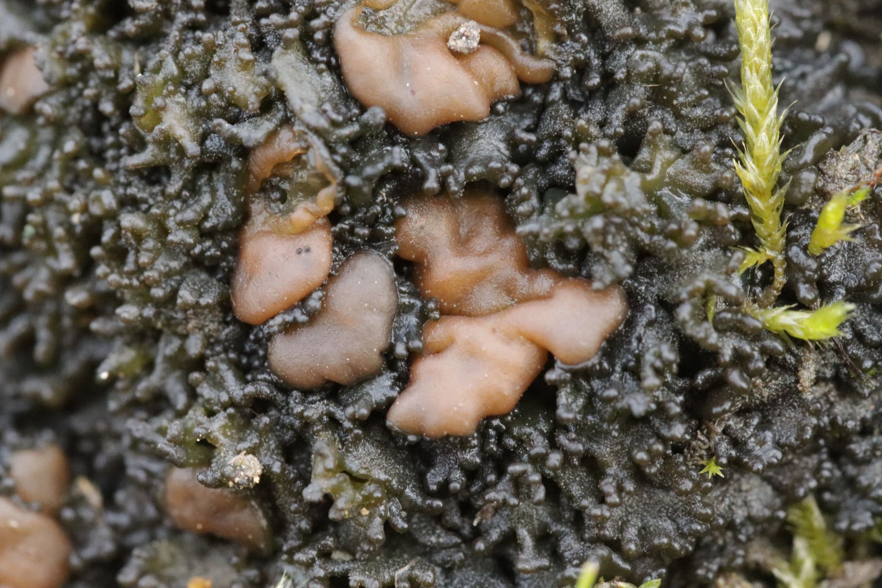 3. Und noch etwas für die Flechtenfreunde: In unmittelbarer Nähe zur Lamprospora wuchs diese Glibberflechte auf dem Erdboden