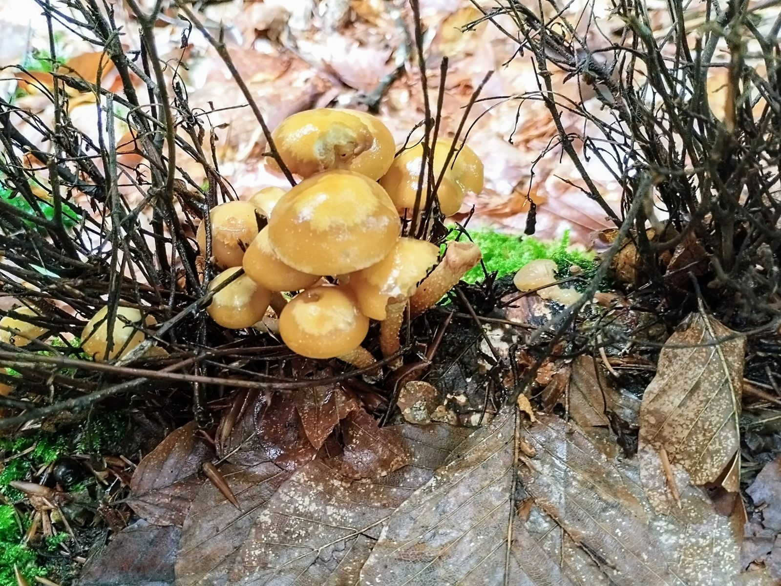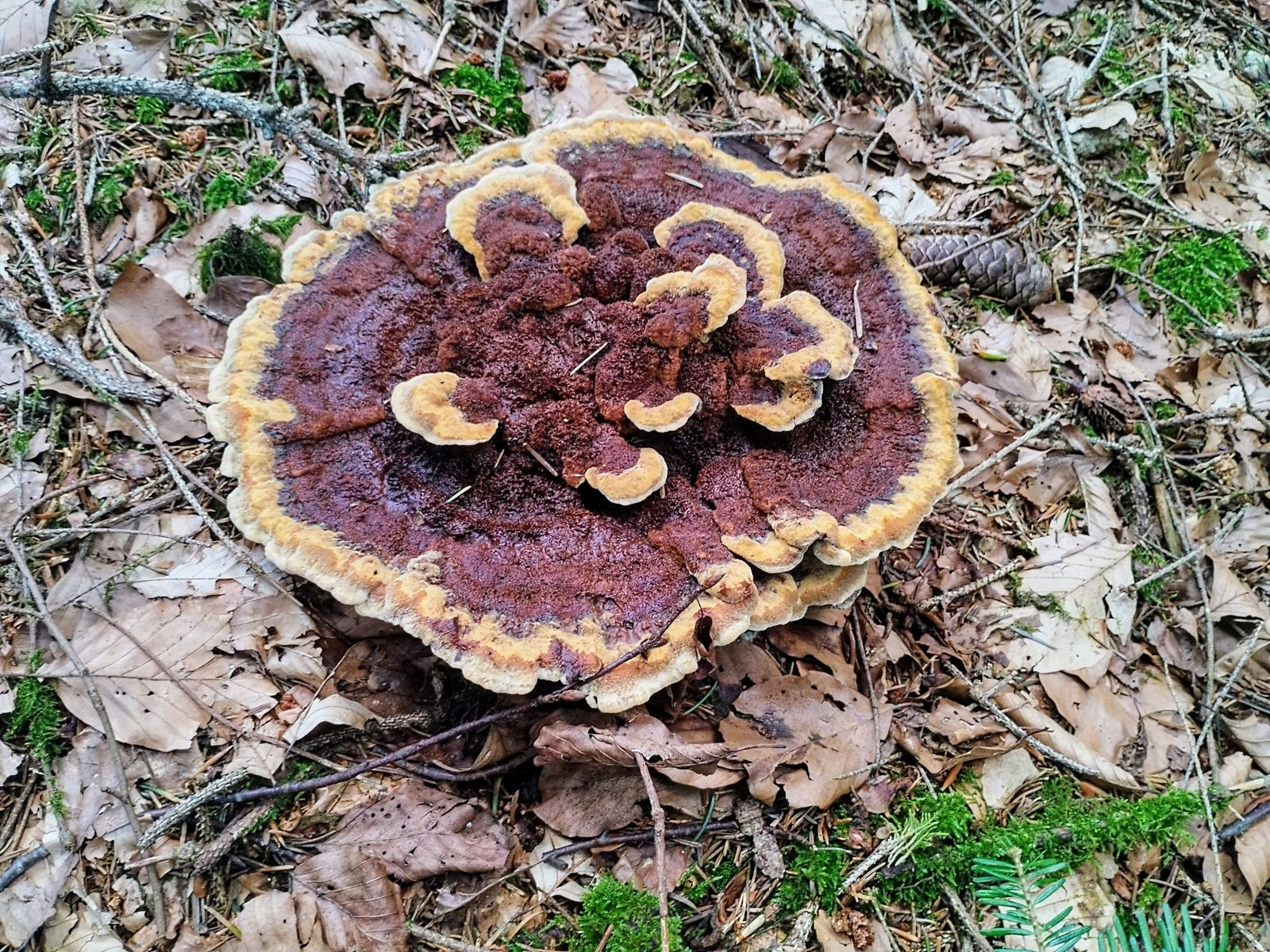 Mittlerweile bin ich schon im Februar angekommen. Wieder bei einer Wanderung konnte ich plötzlich etwas knallgelbes am Fuße eines solitären Baumes entdecken. Von der Form her irgendwas korallenartiges. Das aber bei Frost mitten im Februar? Sehr unwahrscheinlich.